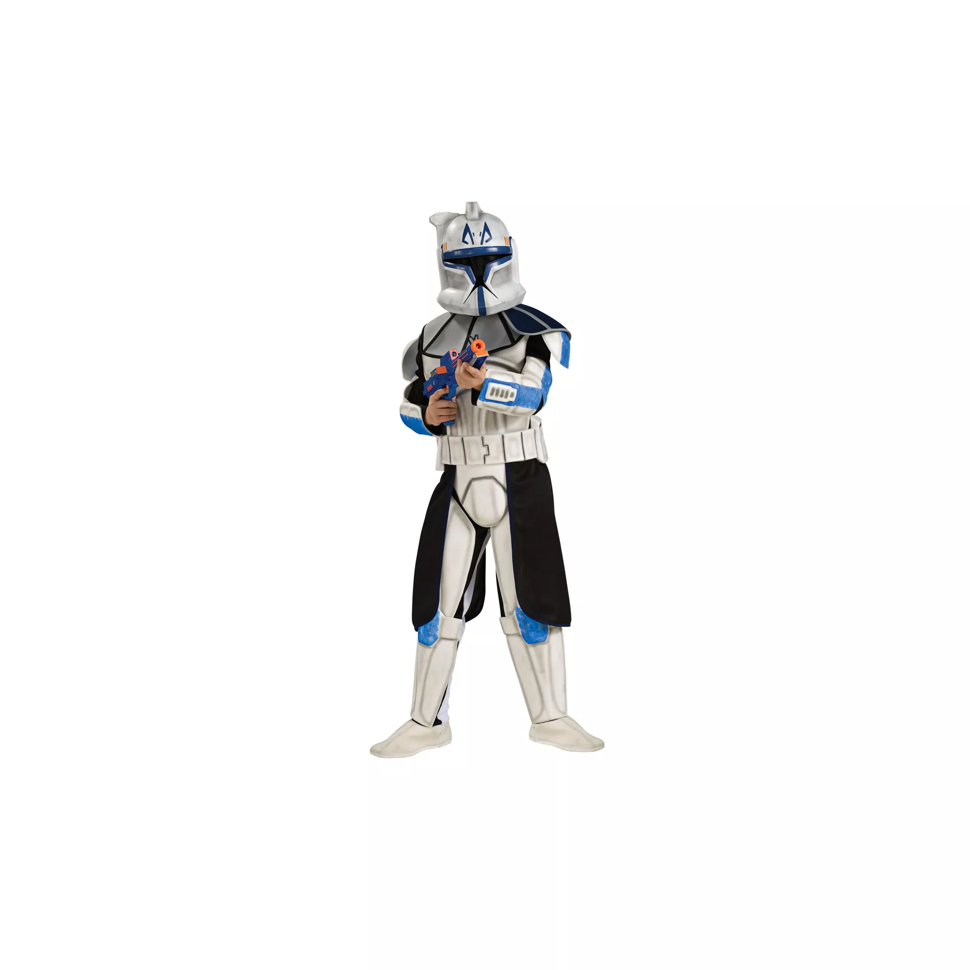 Lead the crowd in this officially licensed Star Wars Deluxe EVA Blue Clone Trooper Rex child costume. The white jumpsuit features character armor and comes complete with a belt, neck piece and two piece helmet.