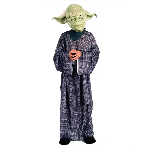 Be a Grand Master Jedi on Halloween when you wear this Star Wars Yoda deluxe child costume. The multicolor, polyester and cotton robe of this Yoda costume comes complete with a waist sash and character mask.