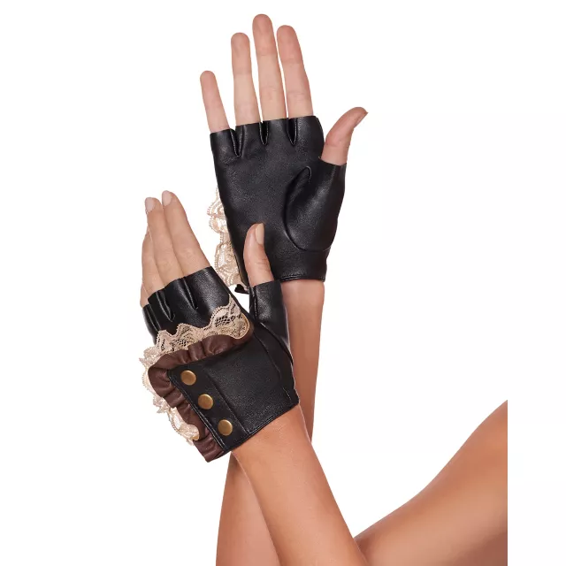 Add these beautiful fingerless gloves to your steampunk costume and you'll stand out from the rest. These faux leather gloves feature a gorgeous lace detail for added class.