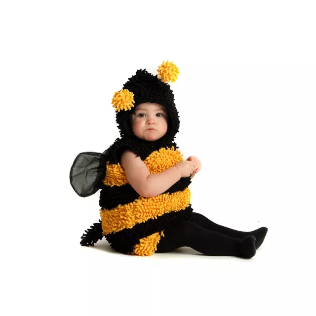Dress your little honey in this adorable Stinger the Bee baby costume - it's the bee's knees! Get the camera ready because this Velcro closure easy to wear costume guarantees baby will be the star of the show. The clever hooded costume is comfy and fun to wear.