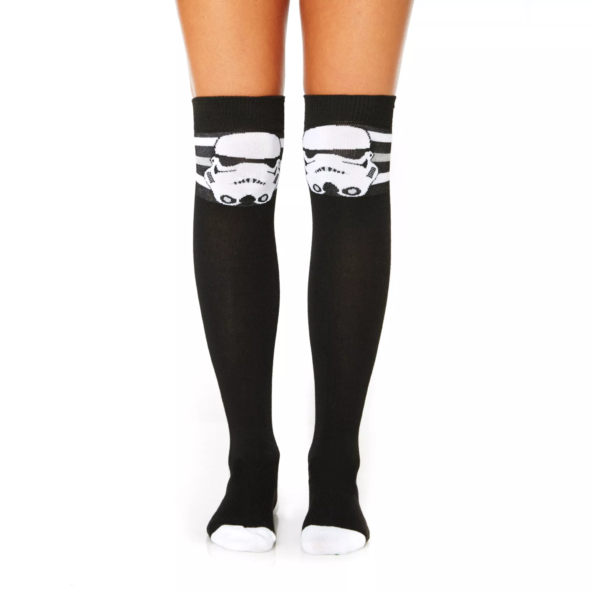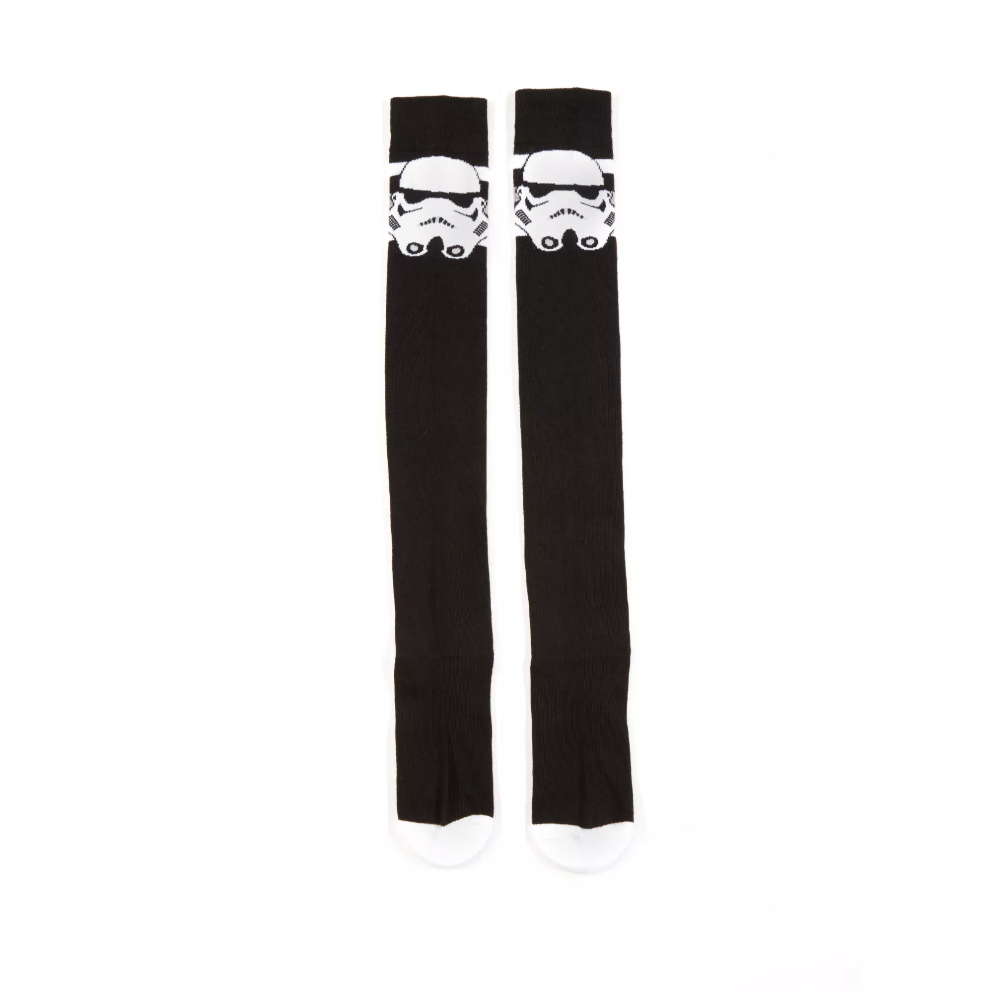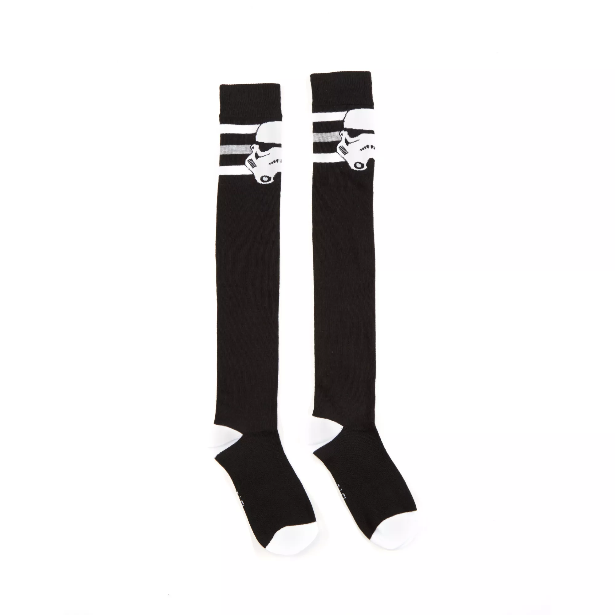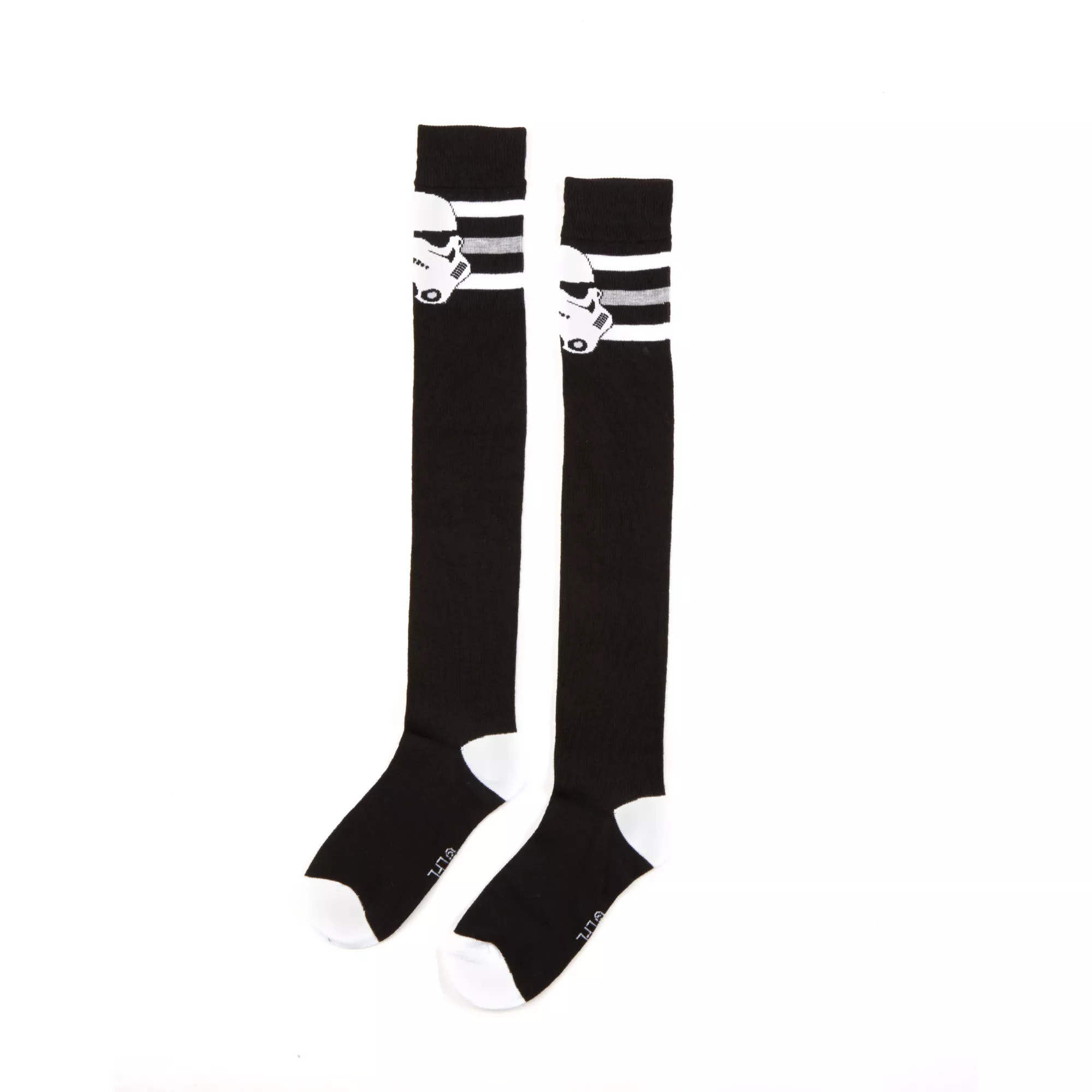 Support the elite soldiers of the Galactic Empire with these officially licensed Star Wars Storm Trooper Over the Knee Socks! The black over the knee socks features a Storm Trooper graphic at the top on top of white and gray stripes with white accents on the toe and heel.