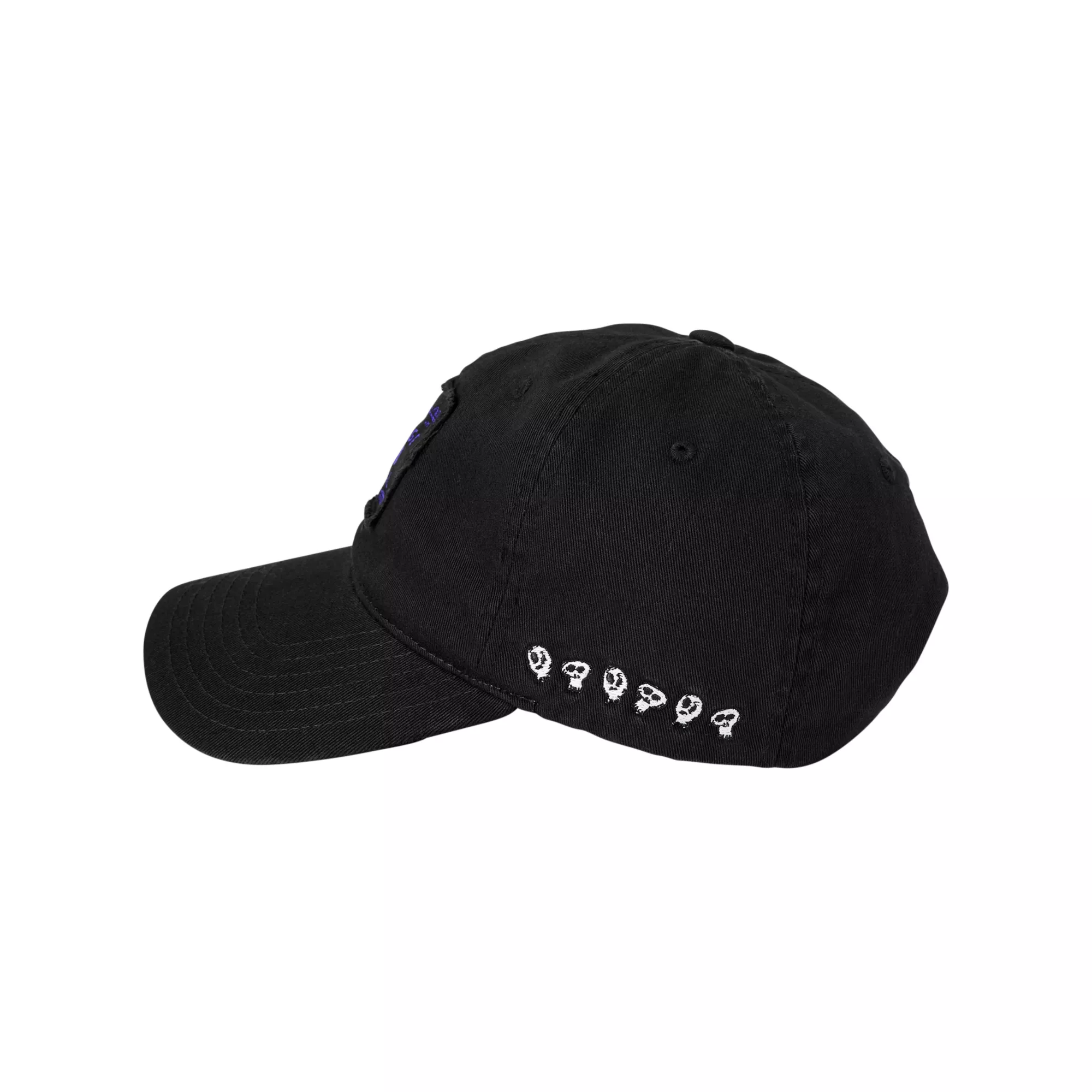 Are you yourself strange and unusual? This Beetlejuice hat is for you! Featuring a front patch with spooky purple print, tiny embroidered skulls along the side, and an official Beetlejuice logo on the back, this slideback hat is a true Halloween must-have.