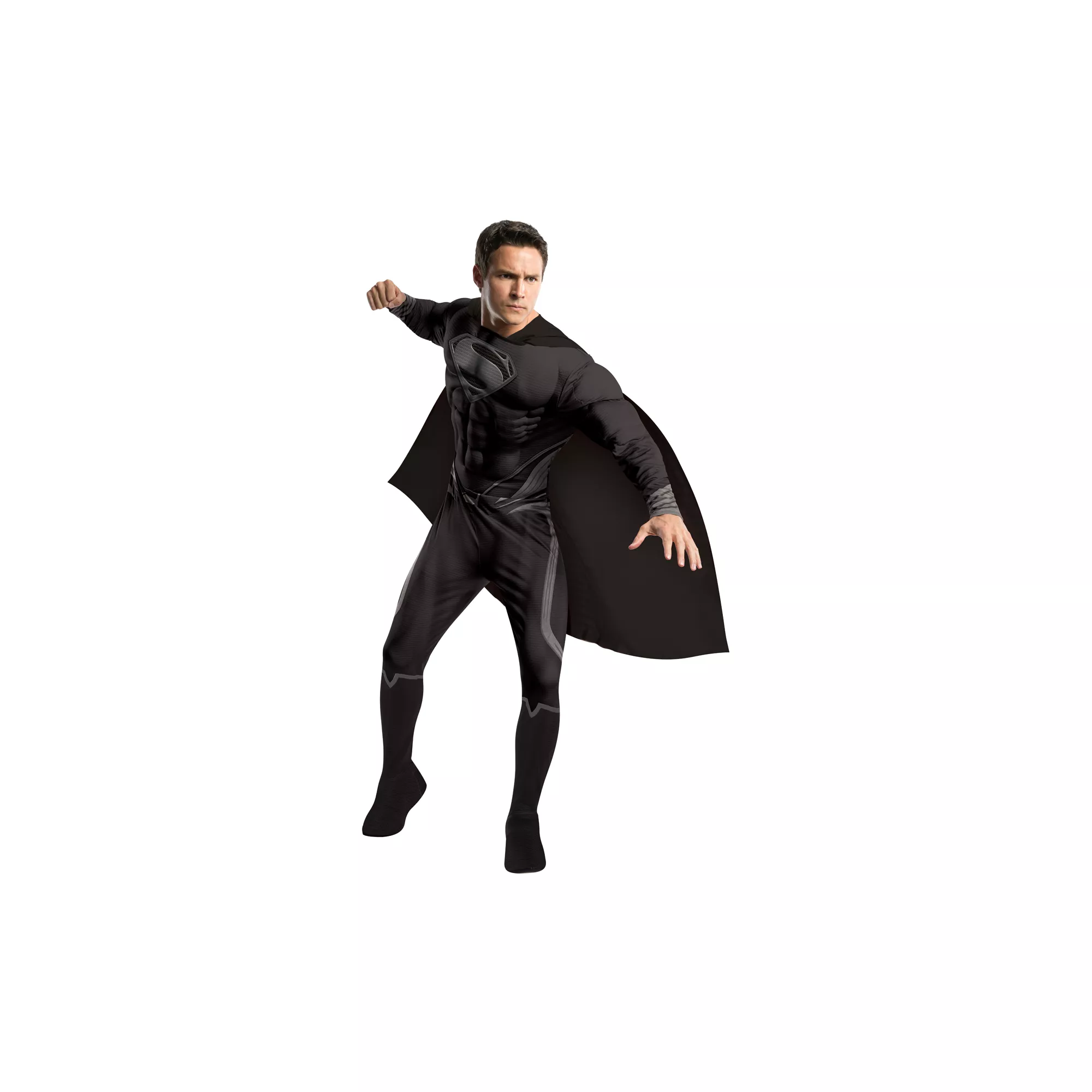 Be a true Kryptonian when you decide to wear this officially licensed Superman Black Suit Adult Costume. Black muscle jumpsuit features attached boot tops and comes complete with a black cape.