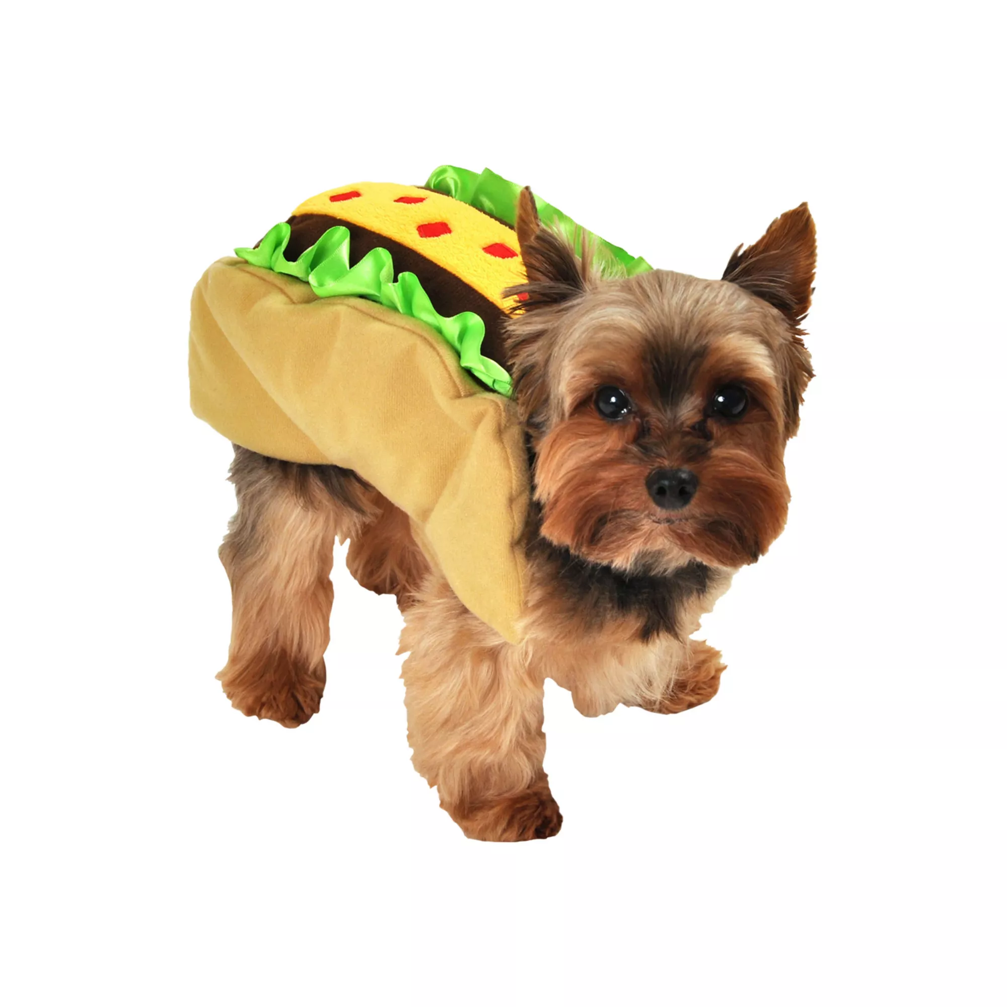 Dress your dog up in the spiciest costume of the year when you have this hilarious taco costume! Designed to look like a hard shell taco with all the fixings, this is sure to be the perfect dog costume that all your friends will taco 'bout all year long.