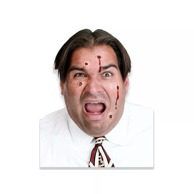 Want to make it look like you got caught in a crossfire or shooting range? You'll certainly have everyone asking, "What happened?" The target practice prosthetic set comes with 5 bullet holes including 2 that are dripping blood and quick-dry cosmetic adhesive. An ideal addition to your fugitive convict or police officer costume.