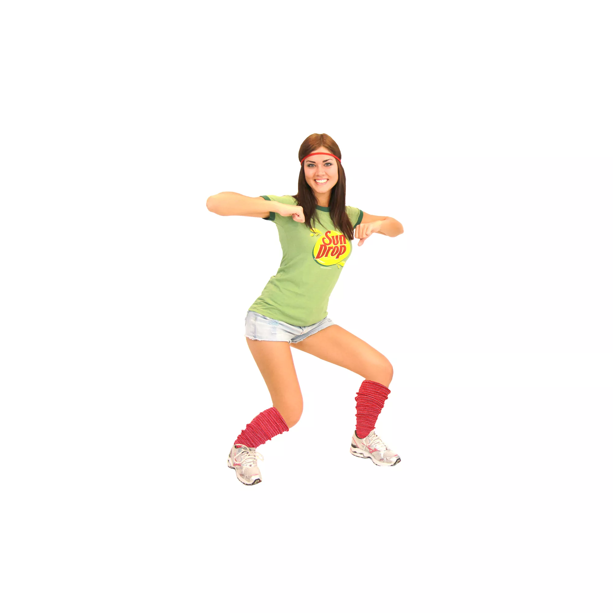 Make it hot on Halloween when you drop it low in this officially licensed Sun Drop Adult Teen Costume Set. You'll make everyone thirsty for some soda pop in this classic brand T-Shirt, elastic headband, and leg warmers.