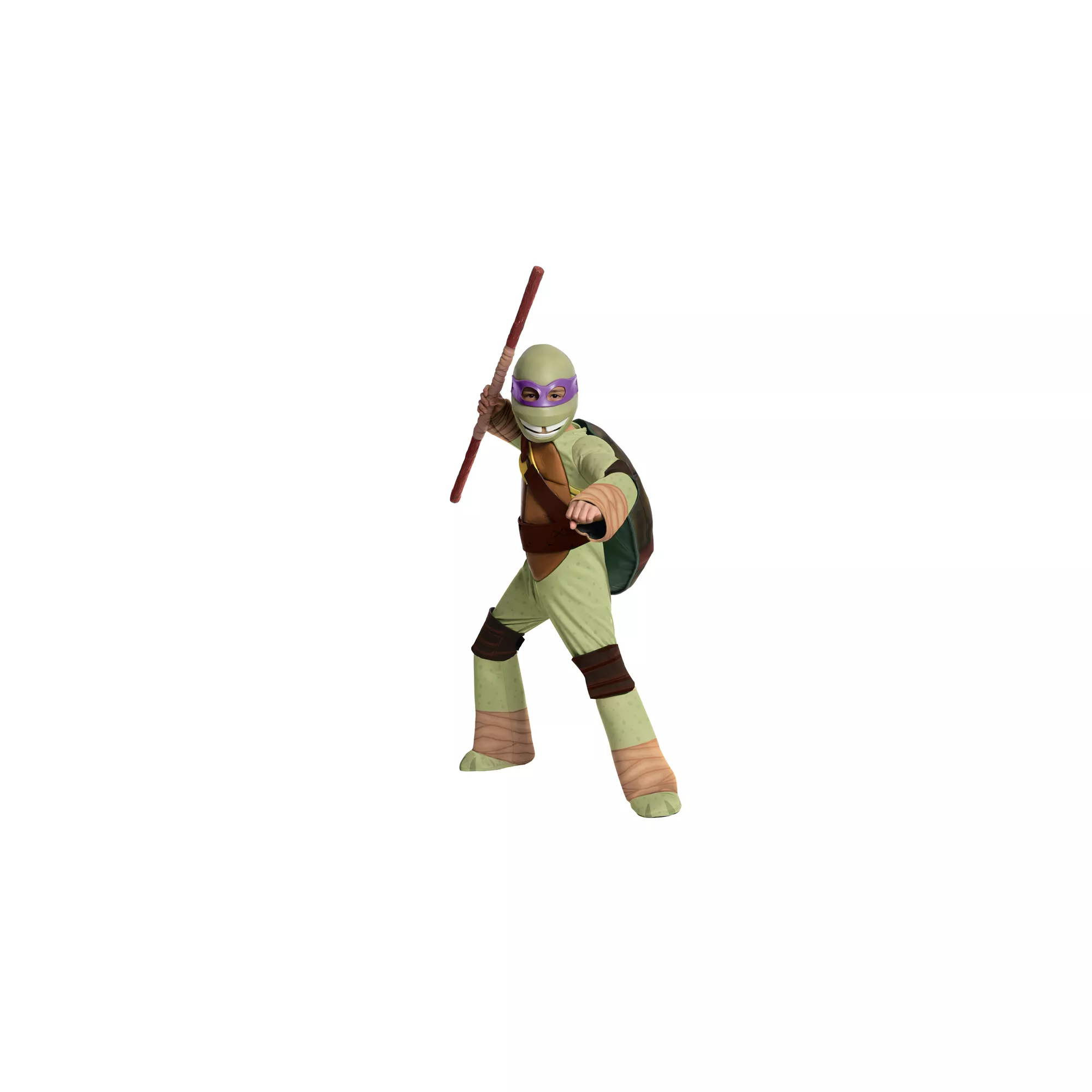 Be the brains behind the operation when you wear this officially licensed Teenage Mutant Ninja Turtles Donatello Deluxe Child Costume. Green character jumpsuit comes complete with a character mask and turtle shell.