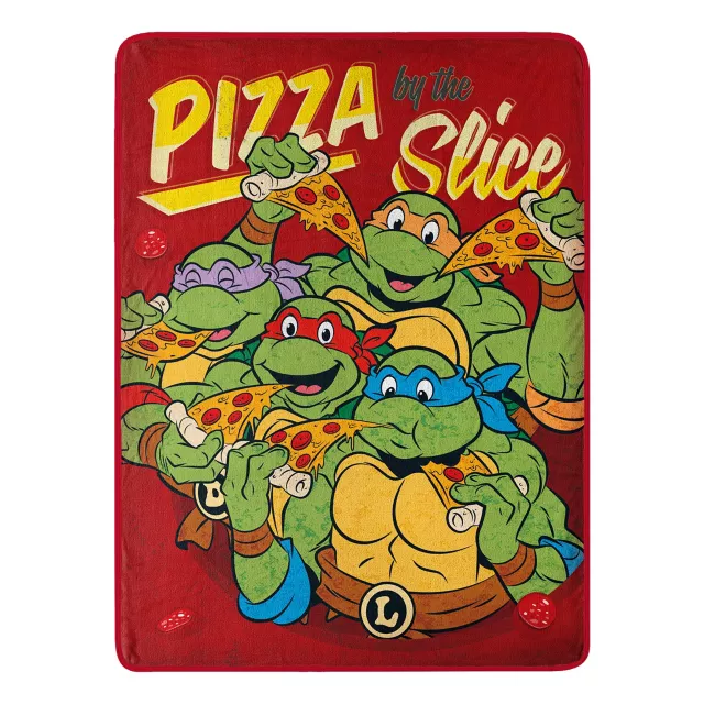 Cowabunga, dudes! Party with your fave pizza-loving turtle brothers this cozy szn with our officially licensed Teenage Mutant Ninja Turtles Nice Slice Fleece Blanket. This fun fleece features Donatello, Raphael, Michelangelo, and Leonardo enjoying some cheesy pizza by the slice!