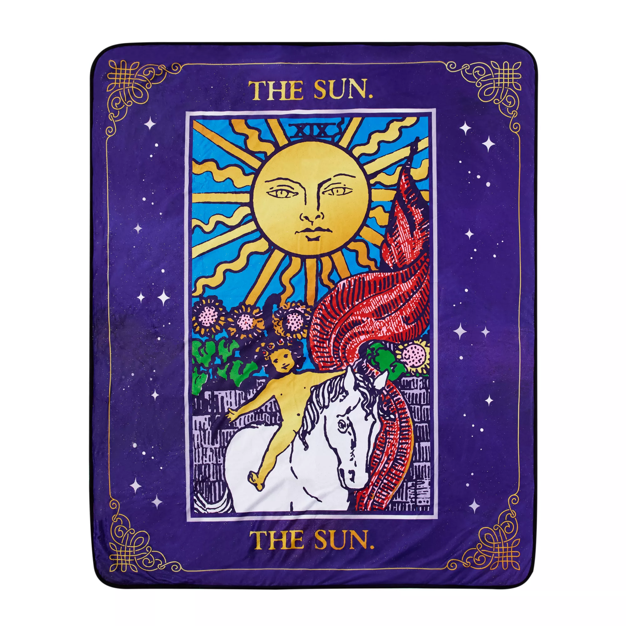 Get comfortable when you snuggle up with this The Sun Tarot Fleece Blanket. You'll instantly add glitter and comfort to your chill session.