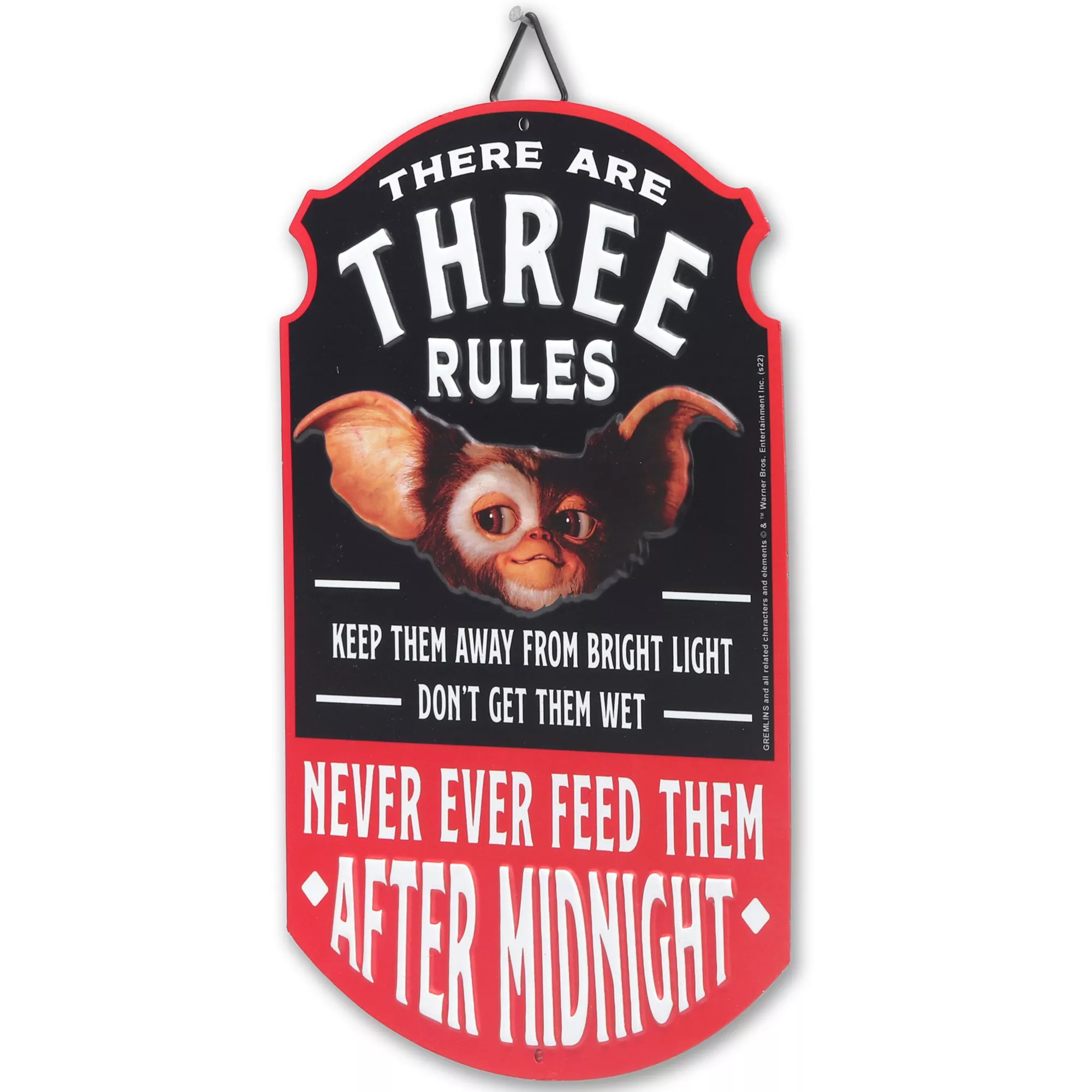 Show off your love for Gremlins when you hang this officially licensed Three Rules Sign in your home! Celebrate your favorite horror movie and make sure to always follow the rules. NEVER feed them after midnight!