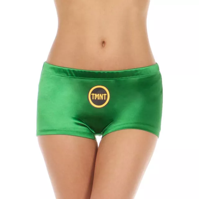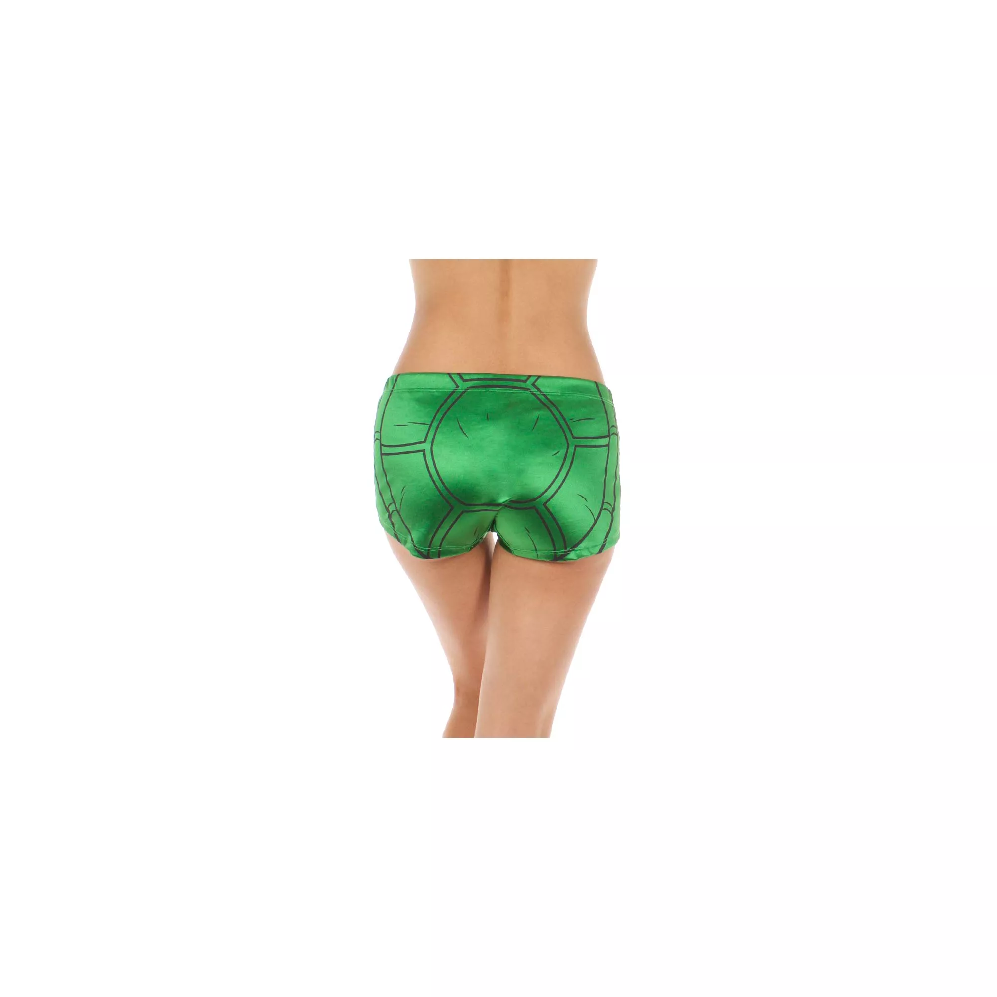 Show everyone you have crime fighting spirit with these officially licensed Teenage Mutant Ninja Turtles Boy Shorts! The metallic green boy shorts feature a turtle shell graphic on the back and the gold TMNT emblem on the front.