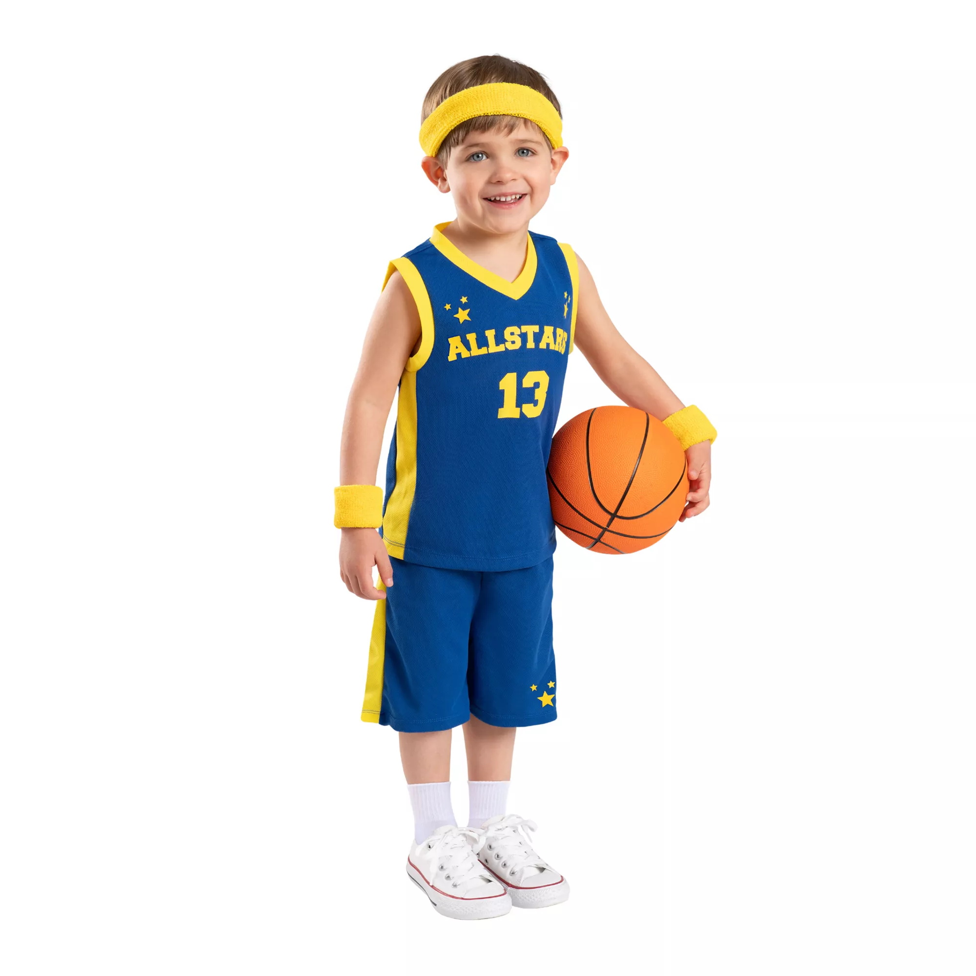Your child's costume will be a slam dunk this Halloween once they dress up in this All-Star Basketball Player Costume. This costume features everything they need to transform themselves into a stellar basketball player including a jersey, shorts, wristbands, and a headband. Your child's game is sure to show this Halloween once they put on this basketball player costume.