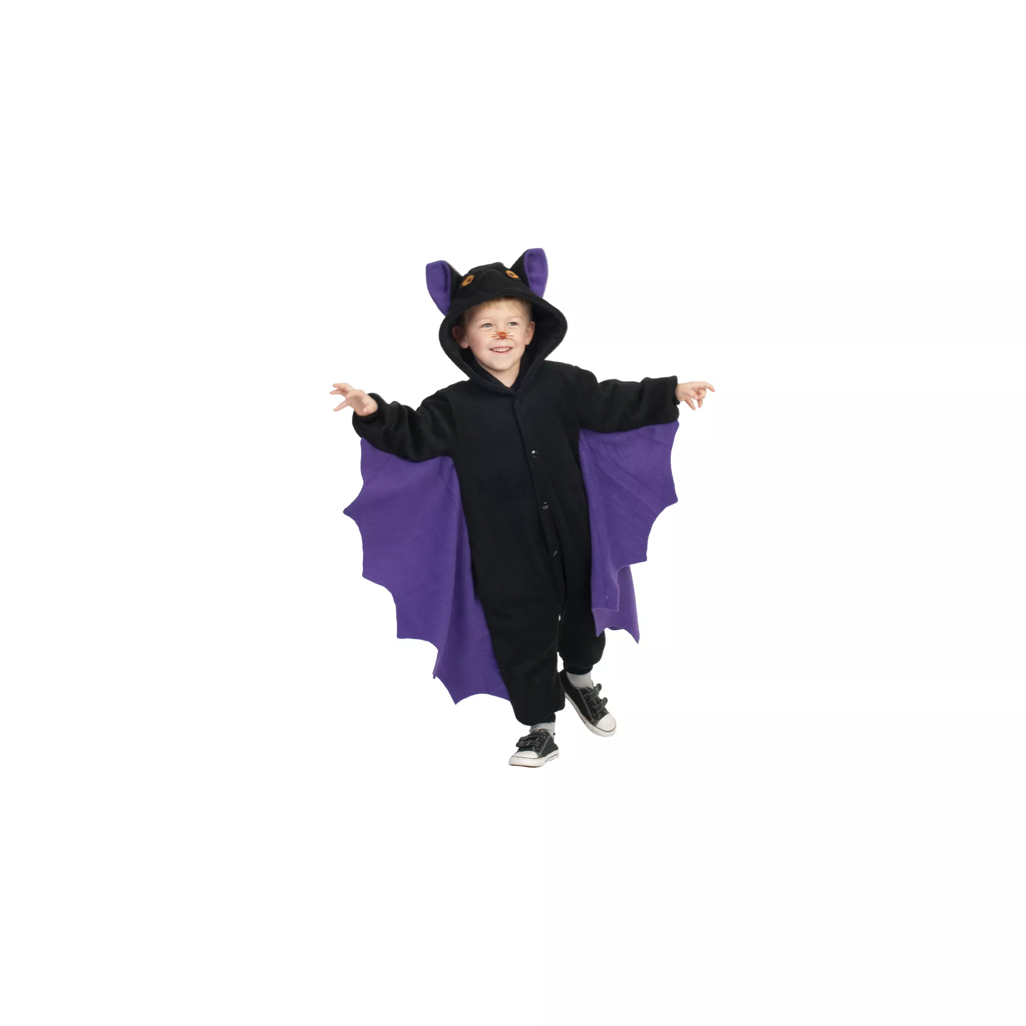What would Halloween be without bats! Drive them batty when you wrap your little one in this cozy black and purple polar fleece Funsies Bat toddler costume and scamper through the neighborhood on Halloween.