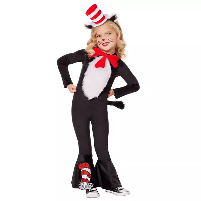Take a page from your child's favorite storybook with this cute and cozy Cat in the Hat costume! This officially licensed costume includes an adorable jumpsuit and a matching headband topped with cat ears and the Cat in the Hat's signature striped hat. It's the purr-fect look for any Dr. Seuss fan!