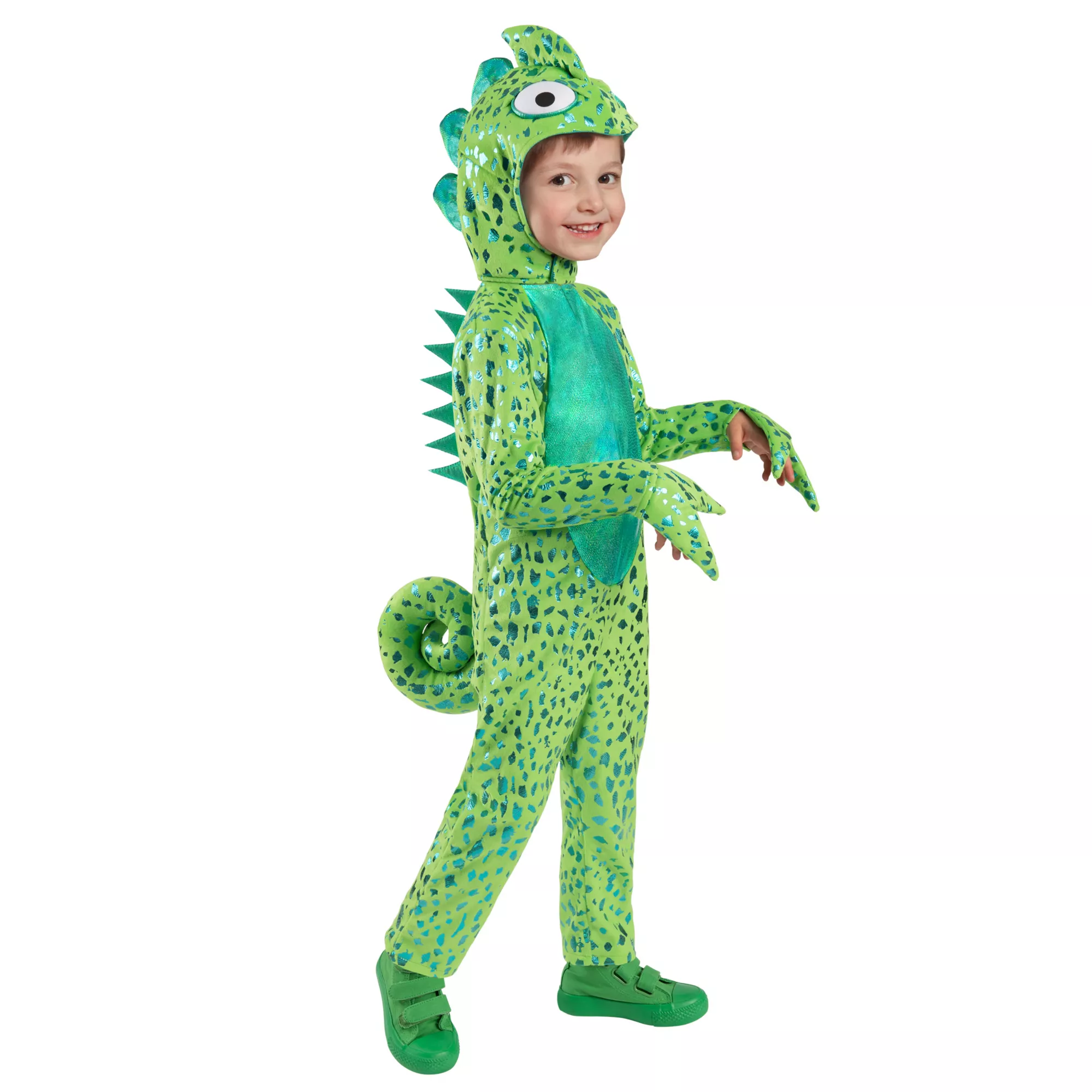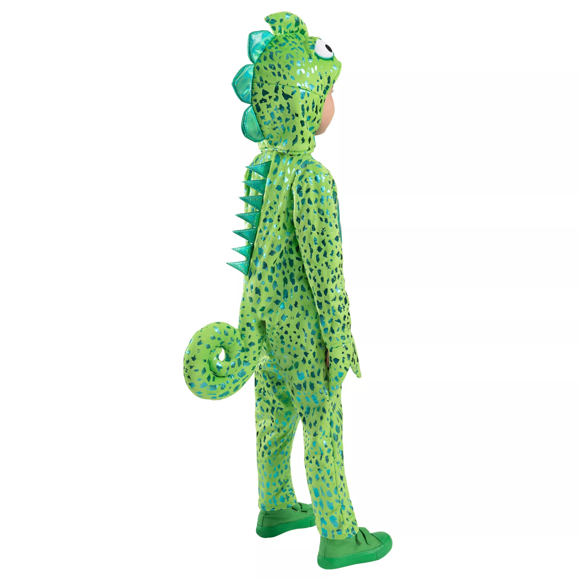 Your reptile-loving little one will be the coolest chameleon on the block in this Toddler Chameleon Jumpsuit! Featuring stunning plush detail and eye-catching green accents, your little chameleon will be slurping up their favorite candy in style and comfort!