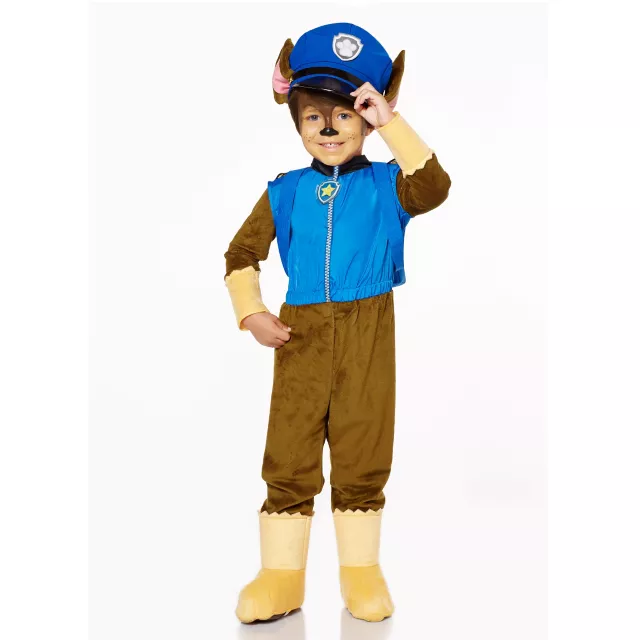 You no longer have to chase after the perfect Halloween costume, the Officially Licensed Paw Patrol Chase Toddler Costume is here! Your little leader will adore this mix of policeman and puppy with this chocolate brown jumpsuit with shiny blue police vest graphic. Accessorize this pup-tacular outfit with included blue backpack and police hat with German Shepard style ears.