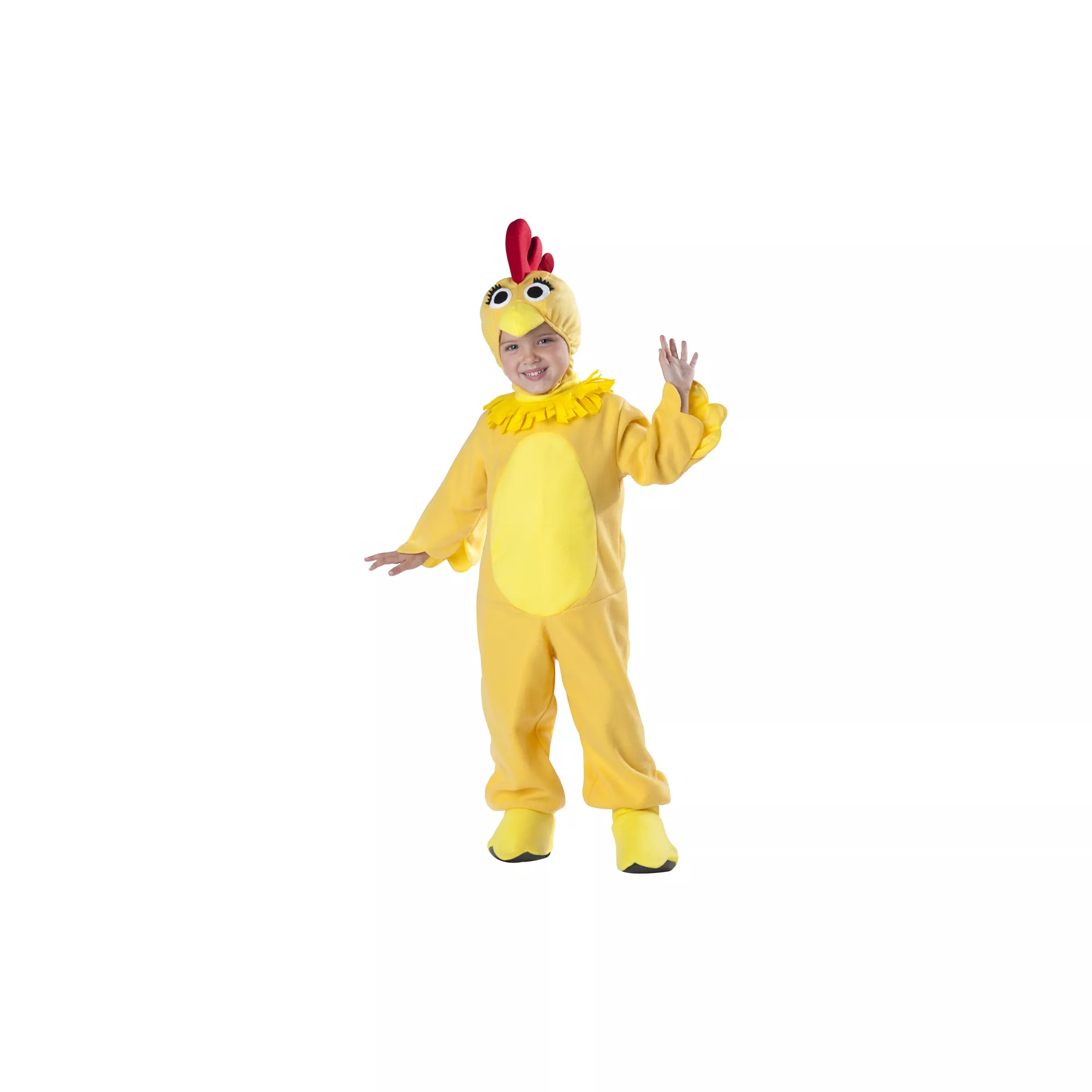Your toddler will be the most mischievous chick in the coop in the Officially Licensed Chica Sprout Toddler Costume. This yellow jumpsuit includes scalloped sleeves that resemble wings, a hood with big, cartoonish style eyes with a red comb on top and matching foot covers.