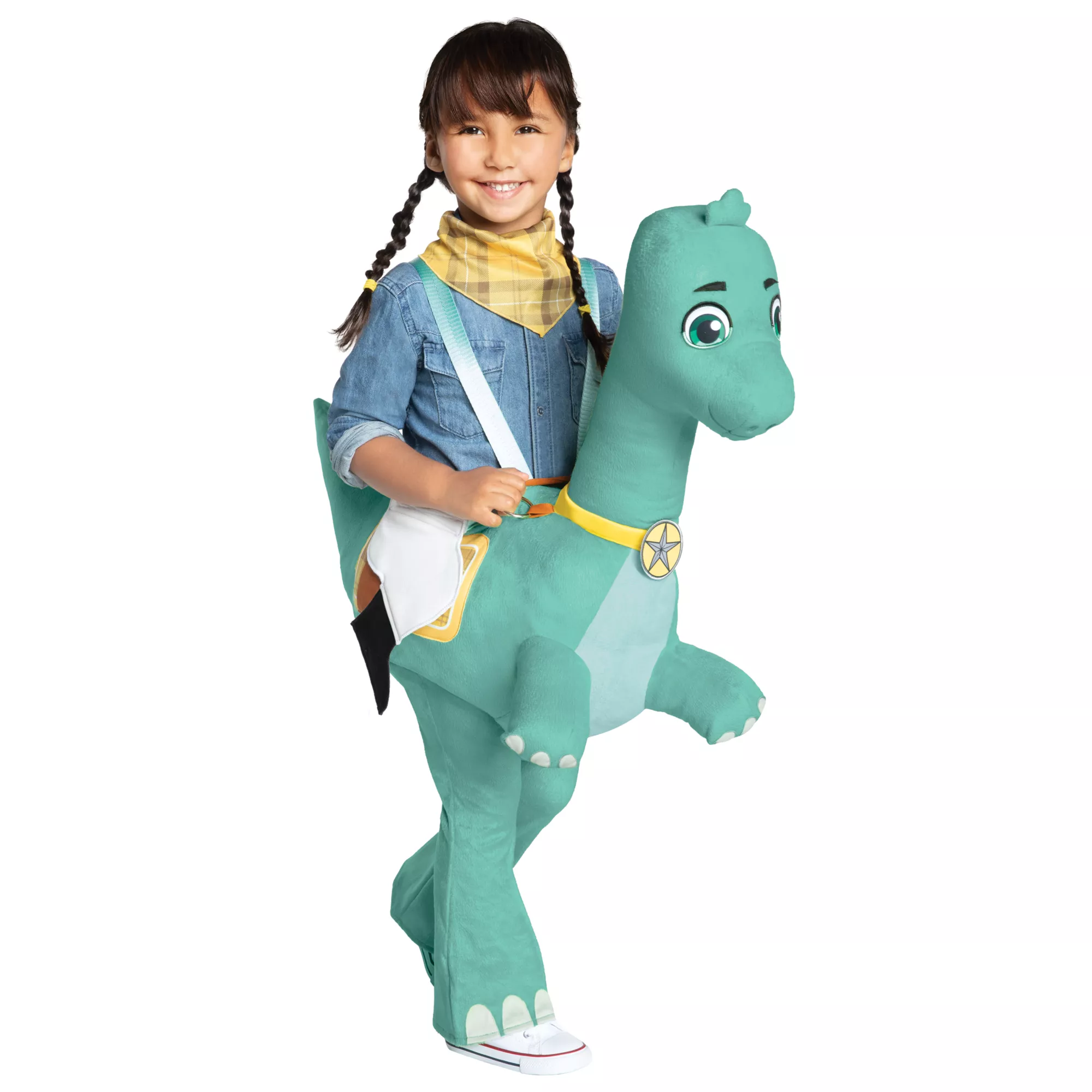 If your child's favorite character from Dino Ranch is Clover, we've got the perfect costume for them. This officially licensed Dino Ranch ride-along costume has attached pants and comes with a bandana, making your little one look exactly like Clover!