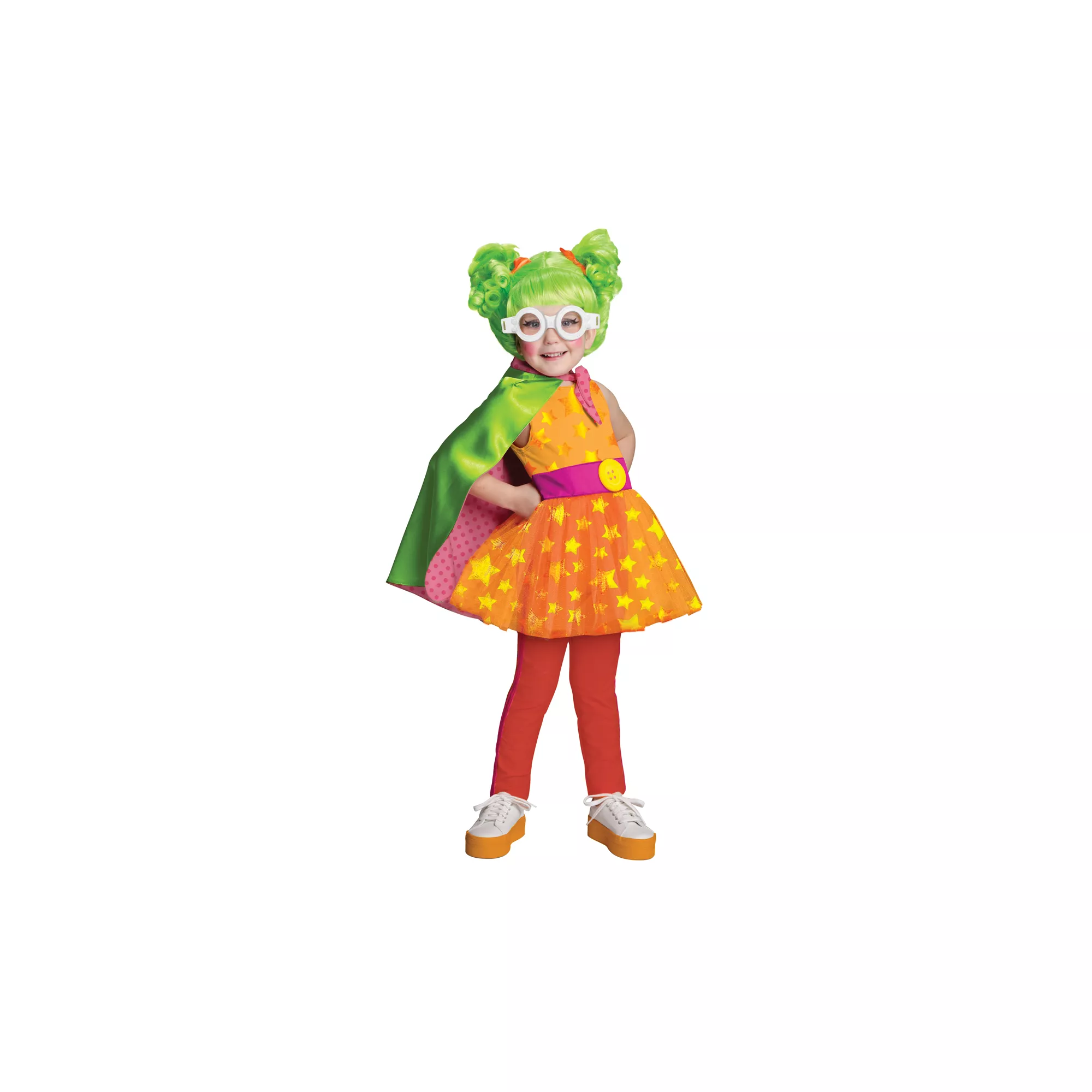Superheroes come in all shapes and sizes! This one may be the world's smallest in the officially licensed Lalaloopsy Dyna Might Costume which comes with dress with cape, tights, glasses, and pig-tail wig so despite her petite frame, she'll look ready for action!