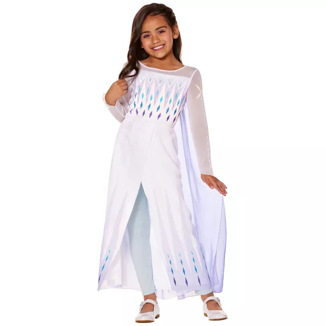 Become the fifth spirit and bind the worlds of humanity and magic in this officially licensed Elsa Finale Costume from Frozen II. This outfit includes a dress with an attached cape and a pair of leggings, providing everything you need to nail the look.