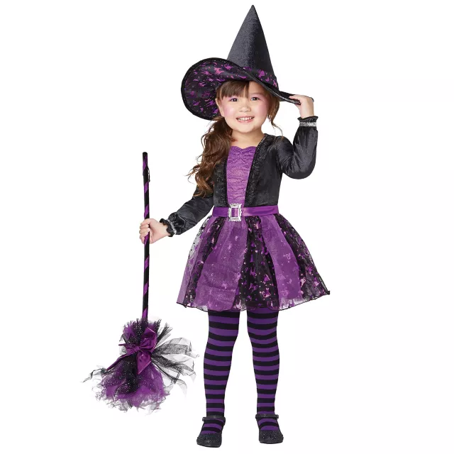 Instantly turn your little one into a master of witchcraft this Halloween when you put on this Fancy Witch Costume! This incredible costume includes a mystical dress, a witch hat, and tights, giving your little witch a wicked style.