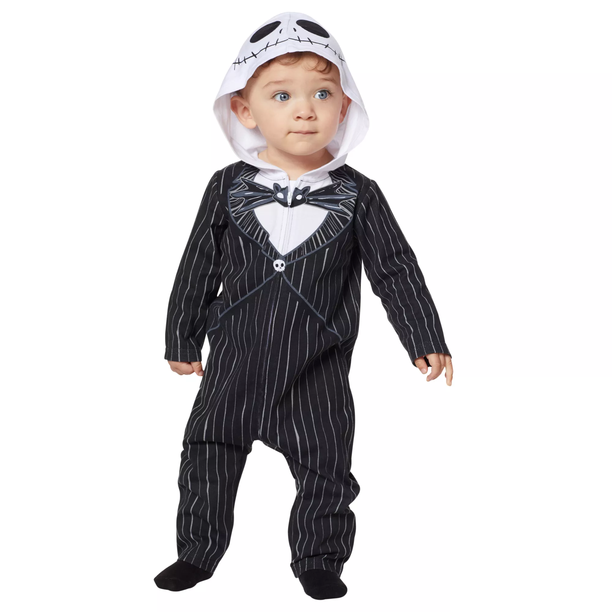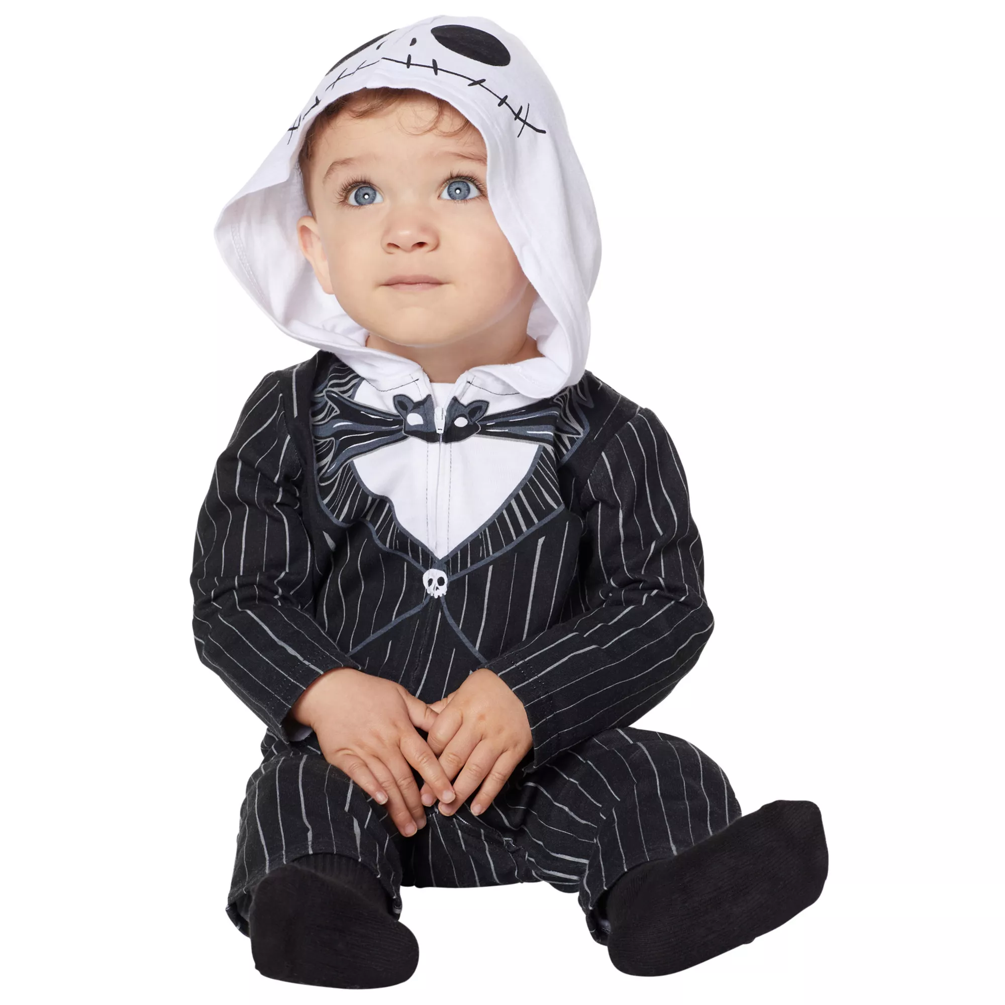 Dress up your little one up as the whimsical Jack Skellington on Halloween night with this spooky ensemble! This one-piece, hooded costume features Jack’s pinstripe suit and bat bowtie, and is topped with a smiling skeleton hood. Take your toddler out in skeletal style with this officially licensed piece!