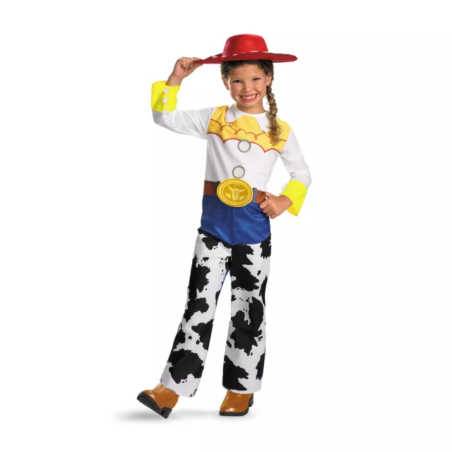 No one will pull your strings when you wear this officially licensed Disney Toy Story Jessie toddler costume. Humanoid pull-string doll outfit is a printed jumpsuit, belt, blue jeans, chaps and a matching hat.