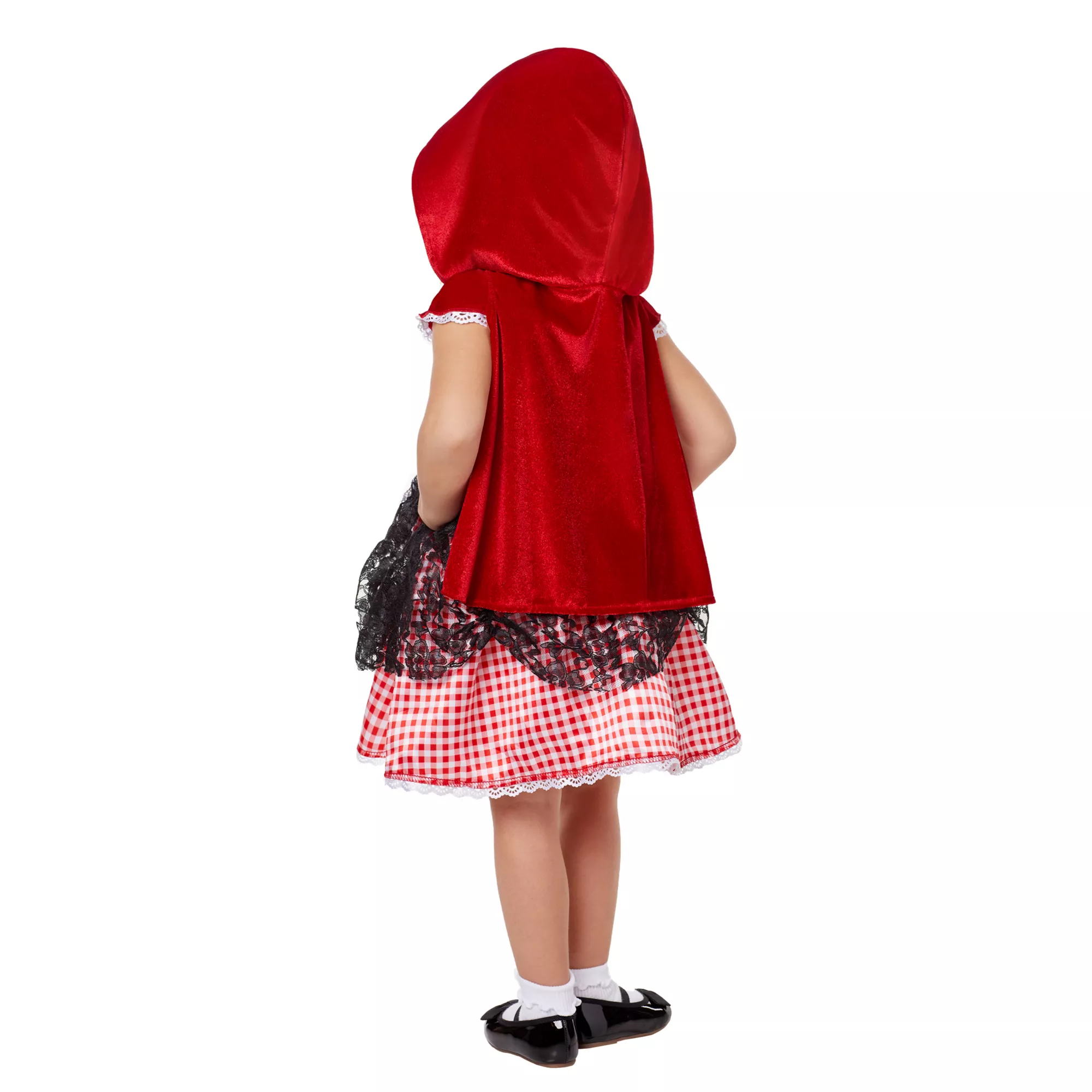 Your little one will be doing more than just traveling to Grandma’s house when you dress them up in this adorable Little Red Riding Hood costume! This beautiful dress features a velour bodice, black lace detail, and a glitter crisscross design. The flutter cap sleeves and a scalloped trim match the attached lace apron that falls beautifully over a red and white checkered flared skirt. Add the included hooded cape and she’ll be ready to be on her way in no time at all!