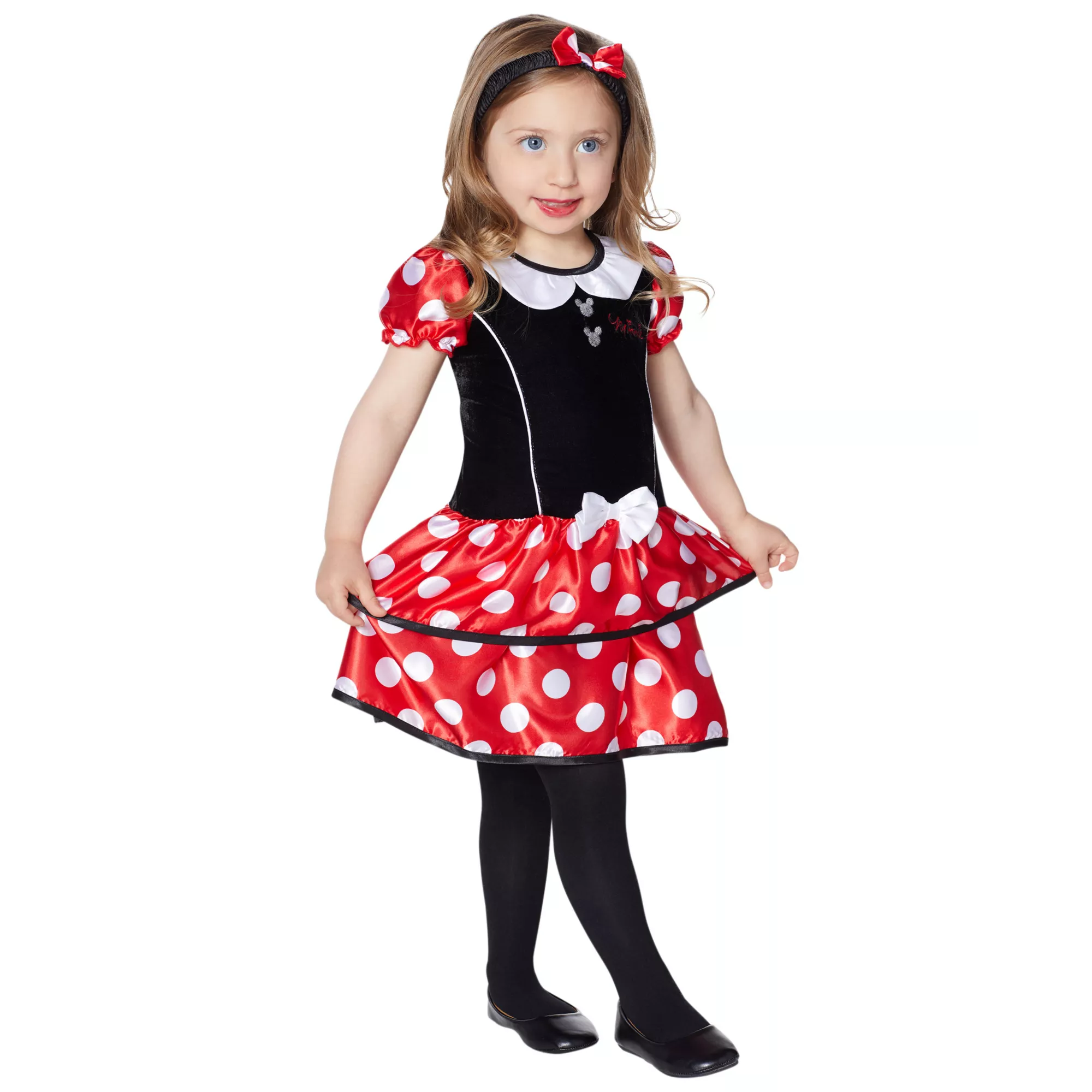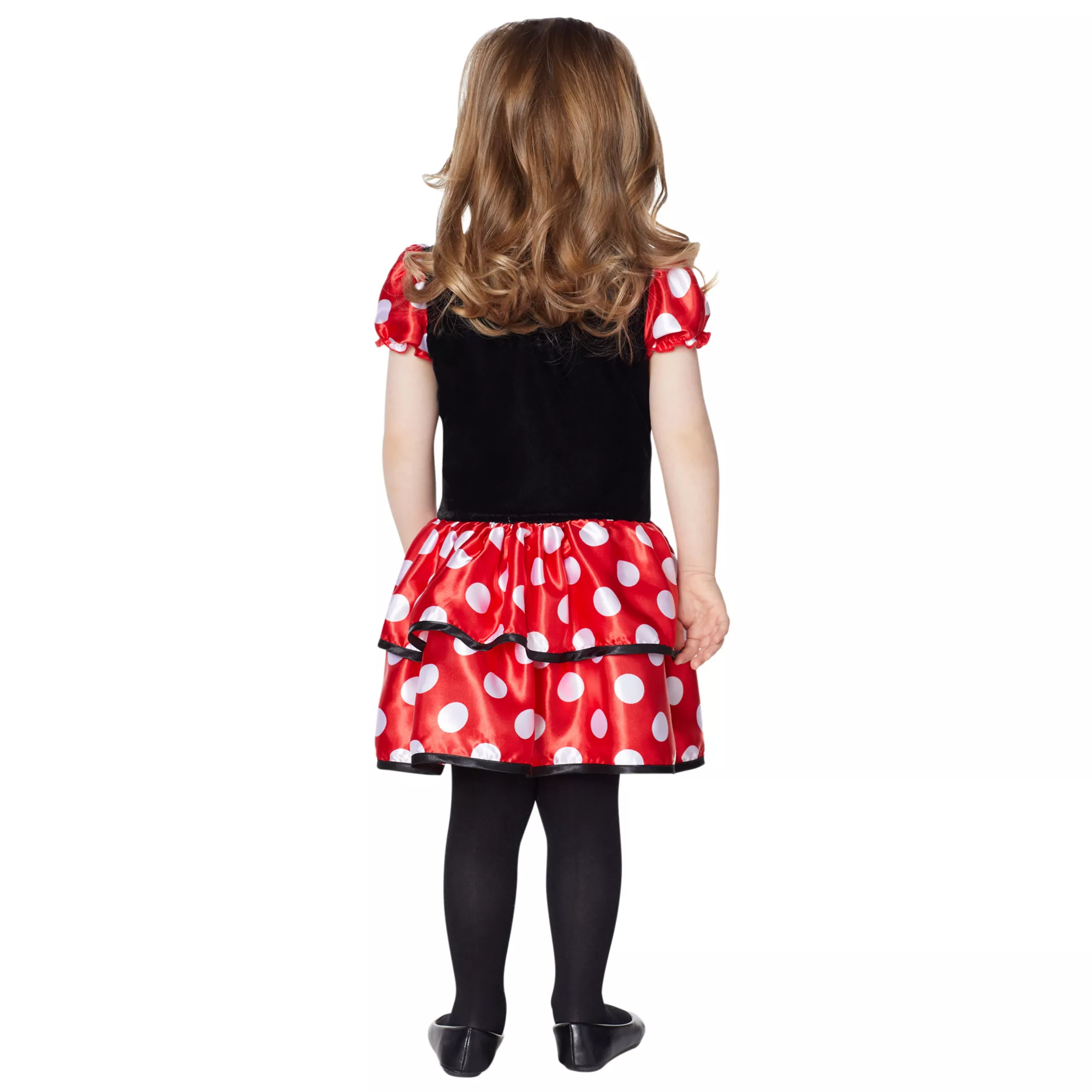 Join Mickey and friends in the Mickey Mouse Clubhouse this Halloween with this officially licensed Minnie Mouse dress. Your toddler will look just like the cute and playful Minnie Mouse with this dress that features her signature red polka dot skirt, black top, and white satin bow across the front. Your child will be spreading love and joy with them wherever they go with this dress and will definitely get some “aww’s” when people see how adorable your little mouse looks.
