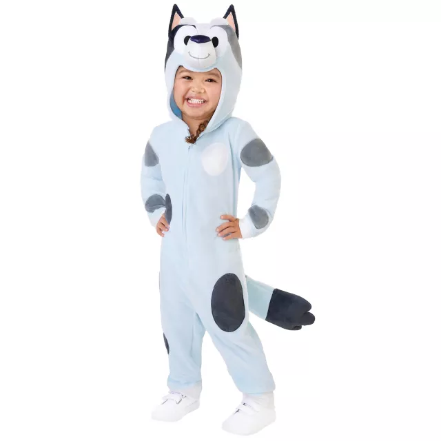 Looking to complete the Heeler family? This officially licensed Muffin costume is perfect for any little one who is a fan of Bluey and the shenanigans she and her cousins get into. With Muffin's spotty fur pattern, attached hood and tail it will have your toddler looking just like their favorite cartoon character in a flash.