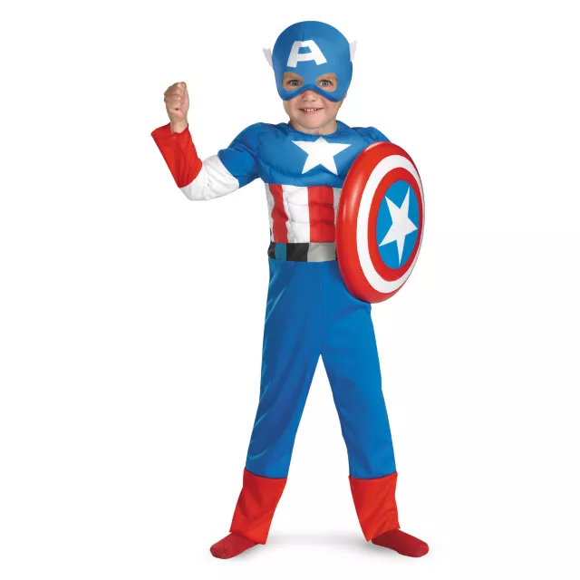 Fight for justice and freedom for America as the ultimate superhuman soldier! Hunt the Scourge of the World in this legendary Captain America costume. This officially licensed toddler's Captain America costume is equipped with a muscle torso and muscle arms along with a soft fabric character headpiece.