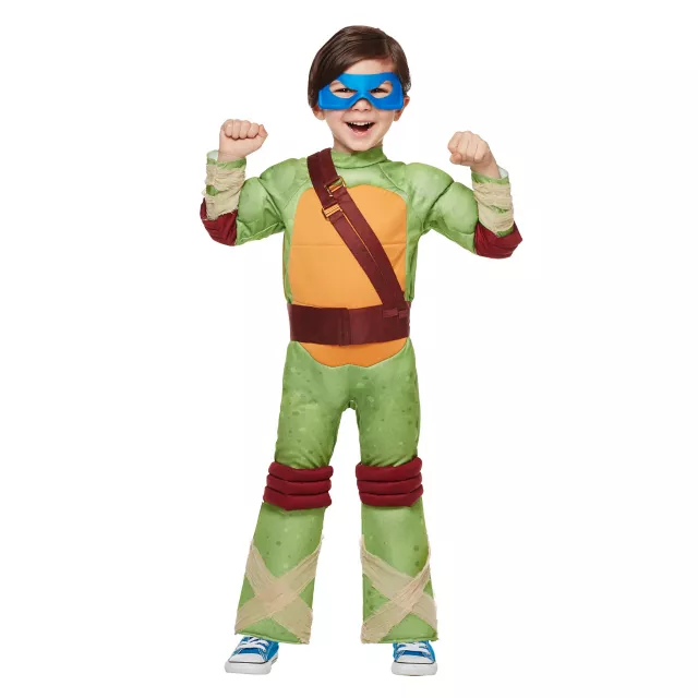 If your little one eats, sleeps, and breathes Ninjustu, they'll want to lead the Ninja Turtle pack in the officially licensed TMNT Leonardo Muscle Toddler Costume! This kick-butt muscle jumpsuit features built-in knee and elbow pads and a cross-body sword holder to fight off all the bad guys this trick or treat season! The adorable blue mask will make your little ninja scrunch-up his face in concentration as he prepares for his candy collecting adventures, making this an epic choice for both you and him!