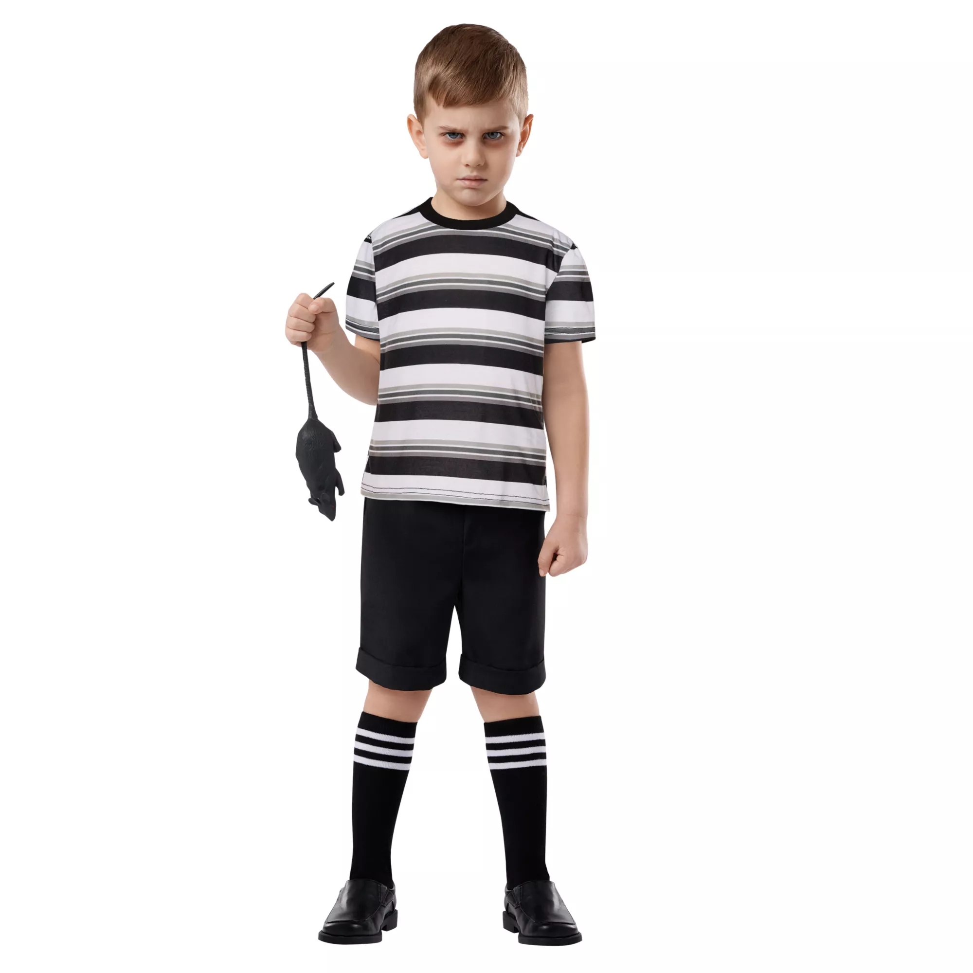 They’re creepy and they’re kooky! Your little one can instantly transform into their favorite member of The Addams Family when they wear this officially licensed Pugsley Addams costume. Featuring Pugsley’s iconic striped shirt and shorts, this outfit includes everything your child needs to nail the look.