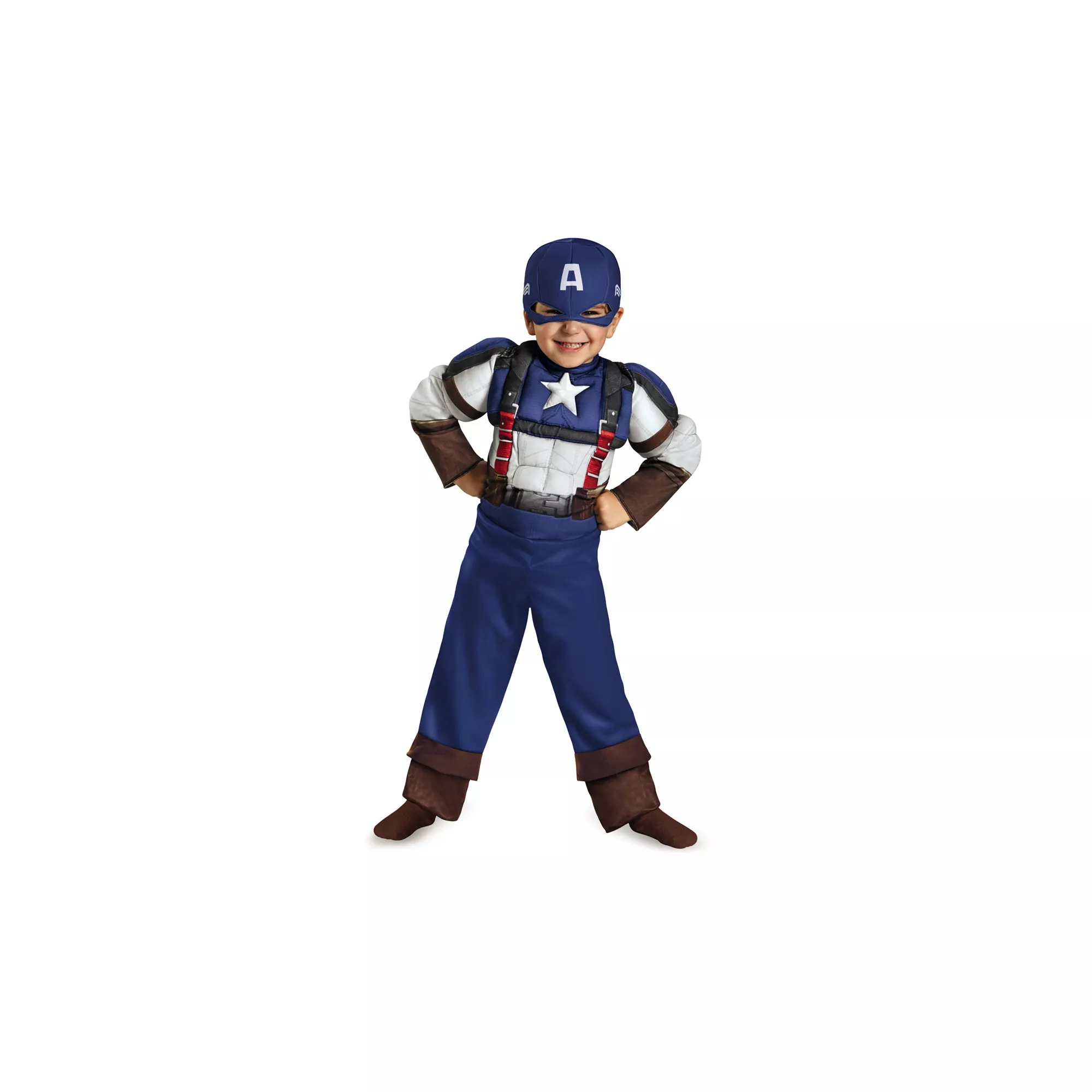 Grandpa would be proud to see his grandchild in a throwback-style Officially Licensed Captain America Retro Toddler Costume. Features a muscled red, white and blue jumpsuit and headpiece with a backpack strap feature.