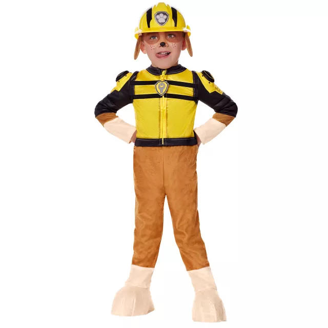Your little one will become the handiest pup in town when they wear this officially licensed Toddler Rubble Costume for Halloween this year. This deluxe costume includes a jumpsuit with an attached tail and a construction helmet, making your child look just like Rubble from PAW Patrol!