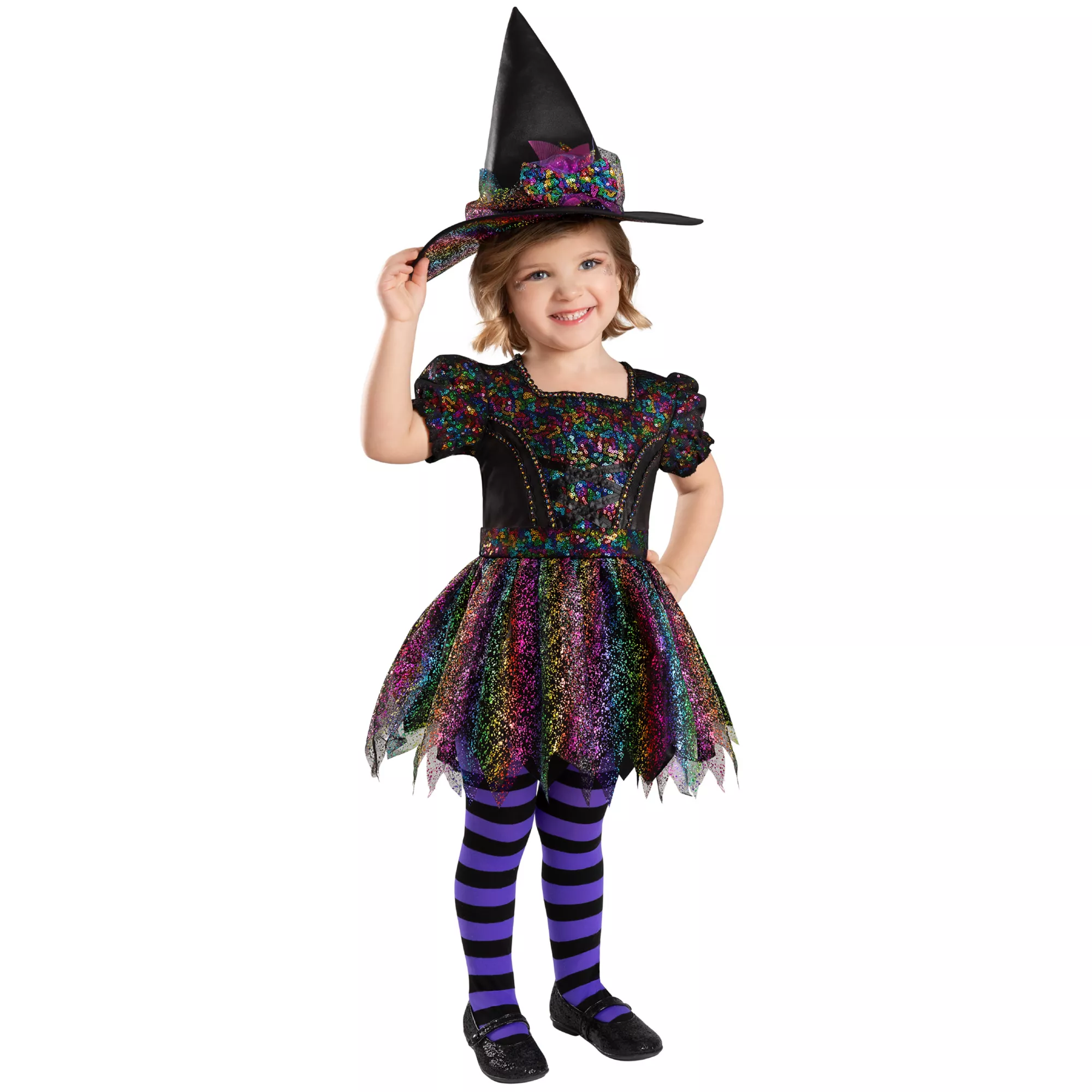 Brew up some wicked potions with your little one once you dress them up in this adorable Toddler Sequin Witch Costume. This costume features everything your child needs to have some wicked fun including a dress, tights, and of course a witch hat. Once they slip into this witch costume they'll be casting some spells all over the house!