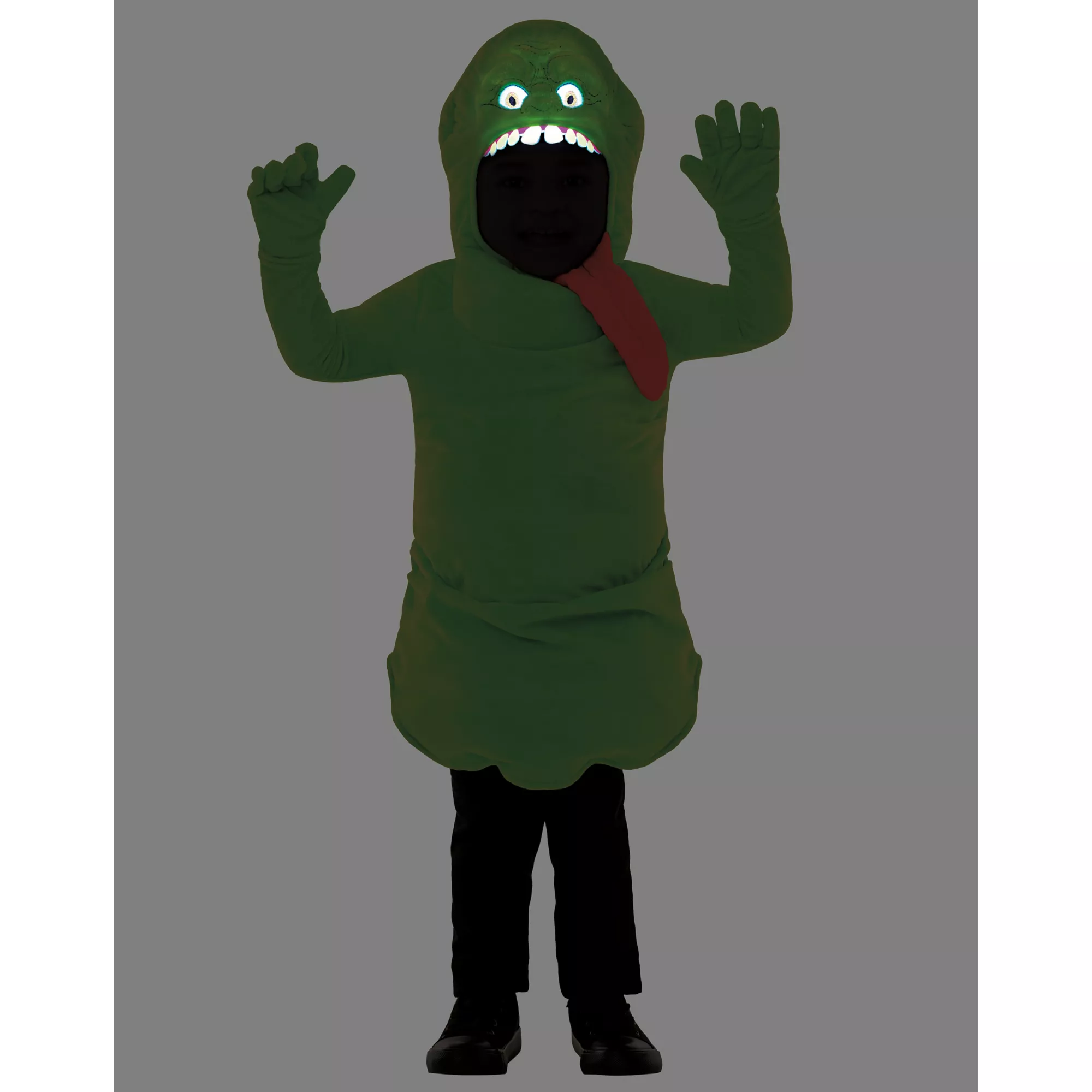 Everybody loves a good ghost story, but few phantoms are as legendary as Slimer from Ghostbusters! Help your little one bring the character to life with this officially licensed costume, which features a 3D jumpsuit with an attached hood and a matching pair of gloves. Celebrate the epic movie series and prepare for the best Halloween yet!