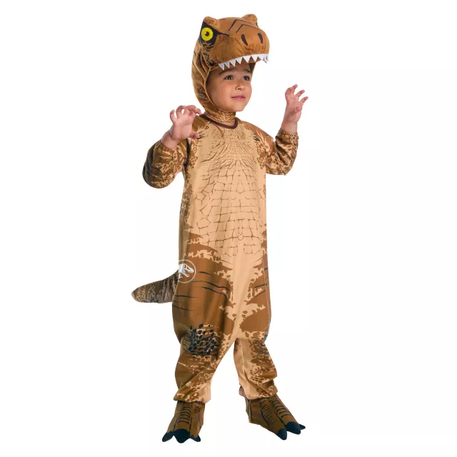 RAWR! Your toddler will look absolutely adorable as they stomp through the streets dress as a T. rex this Halloween! This one piece costume features an attached tail and an attached headpiece for a completed Jurassic look!