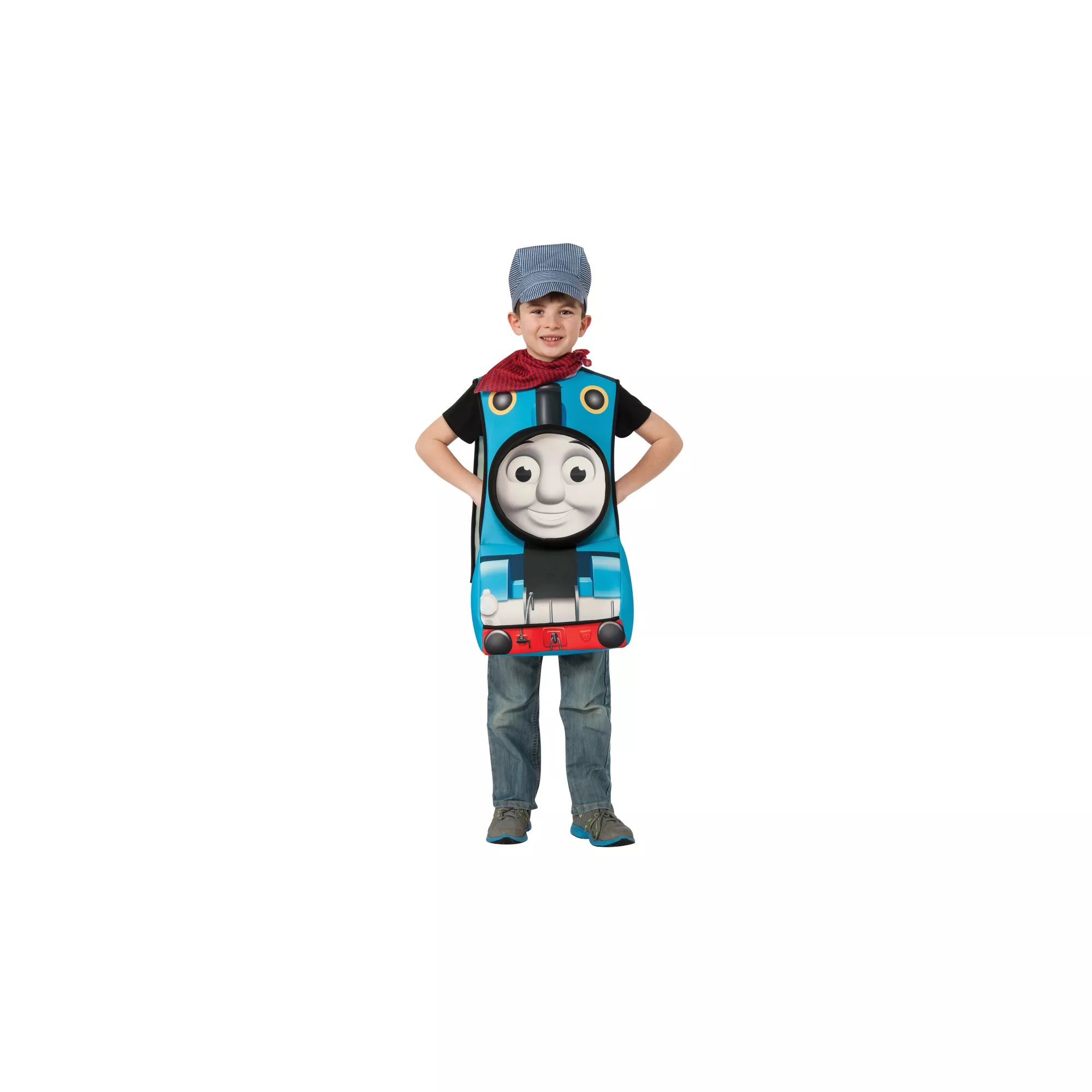 Choo, choo into Halloween in the Officially Licensed Thomas the Train Deluxe Toddler Costume. Your little engine will be the most stylish train on the tracks in this 3-D Thomas graphic tabard, conductor's hat and red scarf.