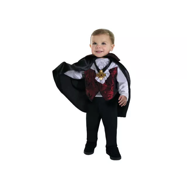 This little vampire can't stay up past midnight so he's completely harmless and completely cute in this Vampire Toddler Costume! With the blood red vest, black dress pants, clack formal cape, white ruffled collar, and medallion necklace, your little one will be stealing hearts like a true vampire!