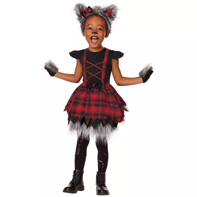 Your little one will be howling at the moon this Halloween when they wear this cute wolf outfit! This costume includes a plaid dress, furry gloves, a wolf ear headband, and leggings, turning your child into the wildest werewolf in town.
