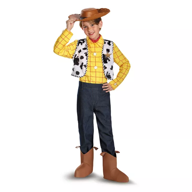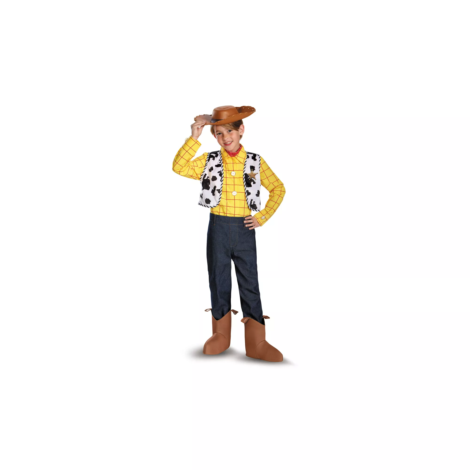 Get all the candy you can when you trick-or-treat in this officially licensed Toy Story Woody Prestige Toddler Costume. The character shirt features a sheriff badge and comes complete with a cowboy hat, boot covers and a matching bandana.