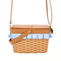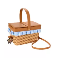Are you off to see the Wizard, the wonderful Wizard of Oz? Keep your belongings (and your favorite pup) safe in this officially licensed Toto Basket Crossbody Bag! This classic crossbody bag is designed to resemble a picnic basket and features a charming blue and white gingham interior lining. With two bag charms included, this accessory is the perfect finishing touch to any Dorothy costume.