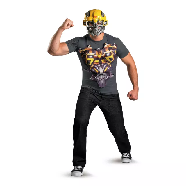 Enter another dimension as Bumblebee, the small but skilled Transformer who can go places that his larger commanders can't. He is a highly fuel efficient Transformer. Maximize your Halloween efficiency in this officially licensed Transformers Bumblebee adult kit which includes a dimensional chest overlay and character mask.