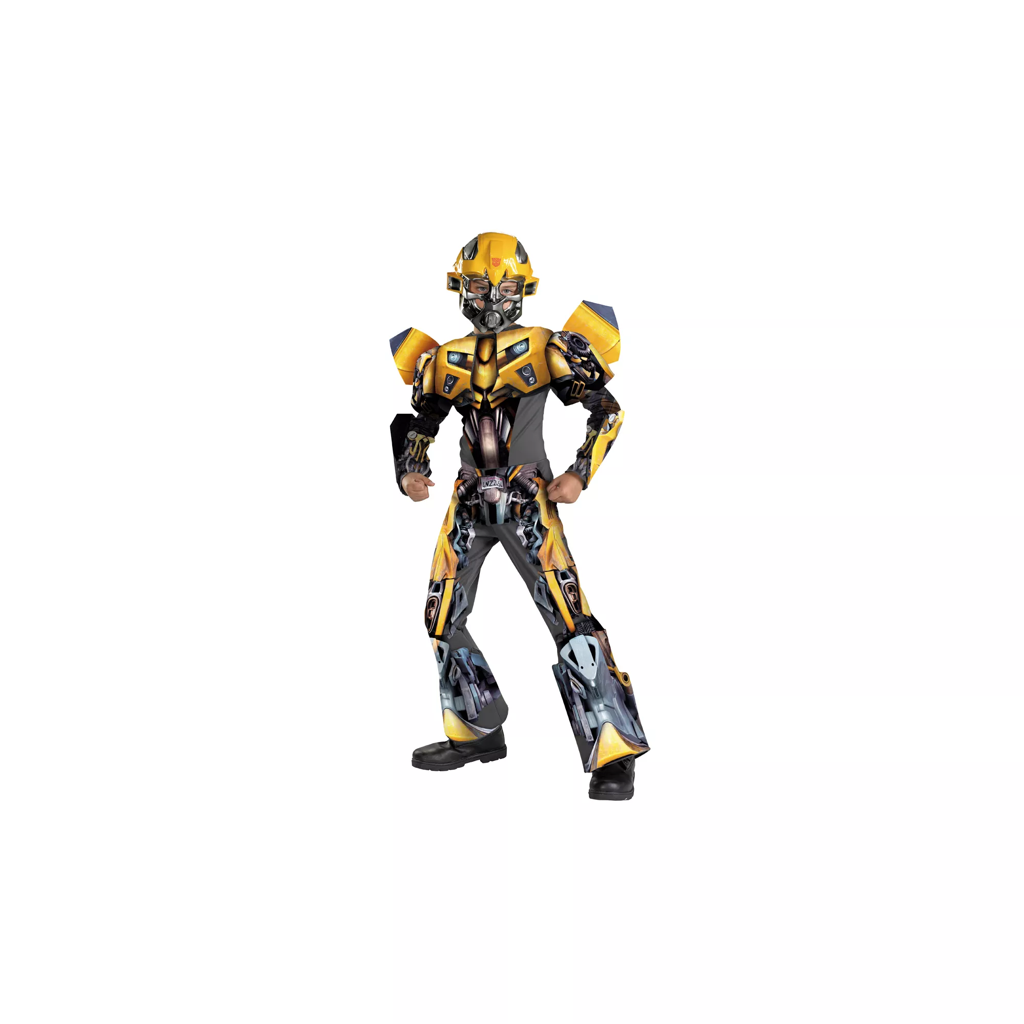 Maximize your Halloween efficiency when you don this officially licensed Transformers Bumblebee Movie 3-D Deluxe boys costume. The yellow character jumpsuit features sculpted 3-D armor and comes complete with a matching character mask.