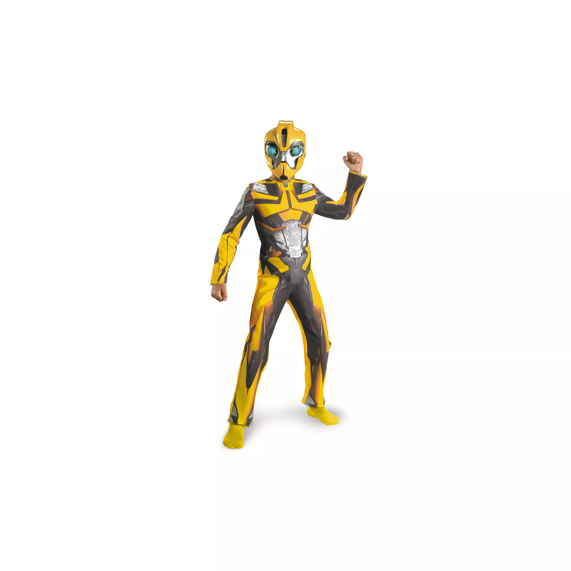 Take risks on Halloween when you wear this officially licensed Transformers Movie Bumblebee boys costume. The yellow, 100% polyester character jumpsuit comes complete with a matching character mask.