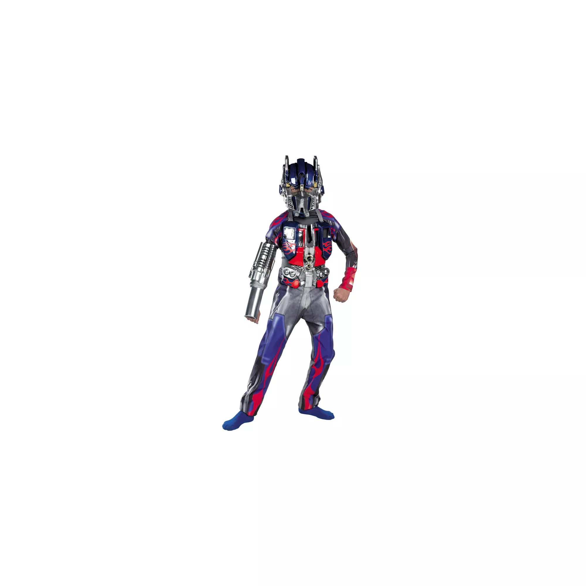 Autobots Roll Out! Take Megatron by storm in this officially licensed Transformers Optimus Prime Movie Deluxe child costume. The grey, red and blue, 100% polyester character-inspired full jumpsuit comes complete with a matching chest piece, toy arm weapon and a character mask.