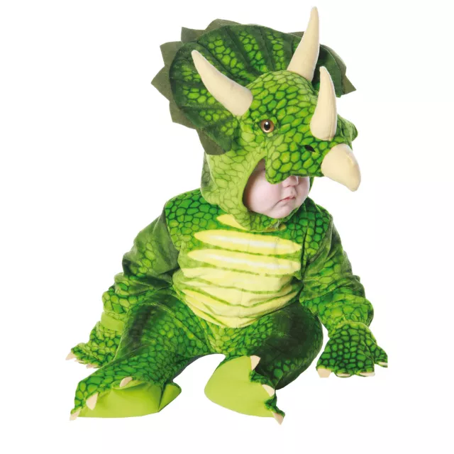 Explore evolution or start a revolution with this tiny tyke Triceratops baby costume. Fossil fuel started with the dinosaurs - how does your little one do in terms of production? Find out and have fun with this fanciful and colorful dinosaur baby costume.