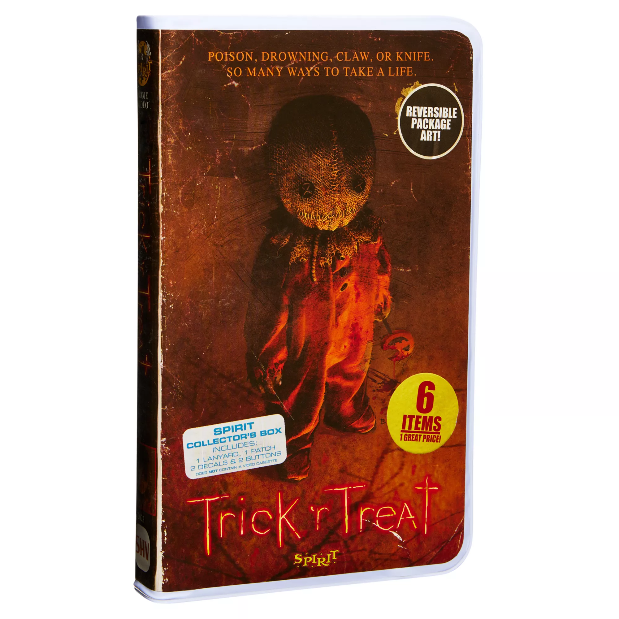 Reminisce over your favorite movies with our Video Collectors Boxes! This box features the video cover art for Trick 'r Treat, and is even reversible for a more authentic look. This collector's box features a mystery item behind every tape.