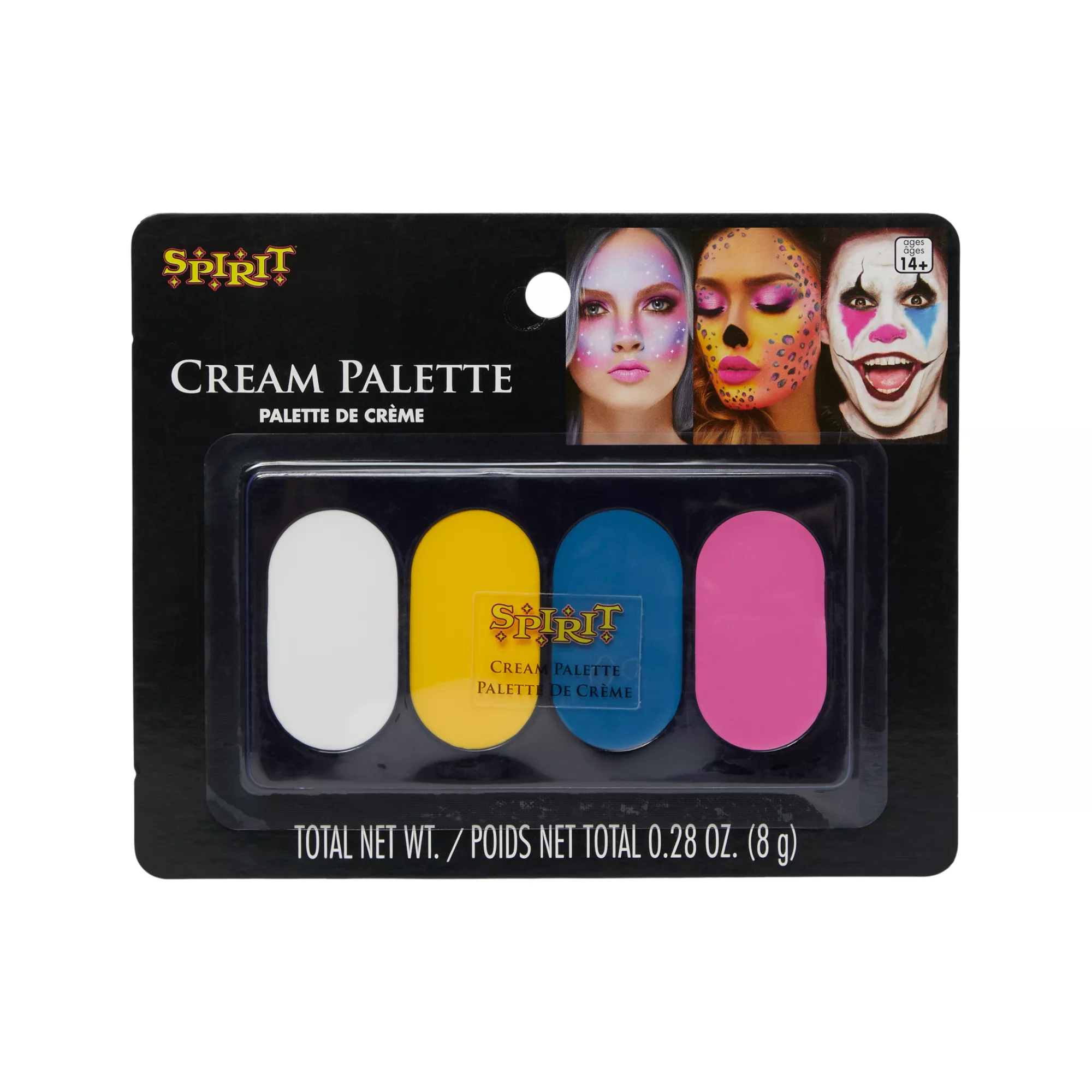 Go bold with your Halloween look with this Tropic Tones Makeup Palette! With its white, yellow, blue and deep pink color, you'll be able to match your makeup to your costume easily.